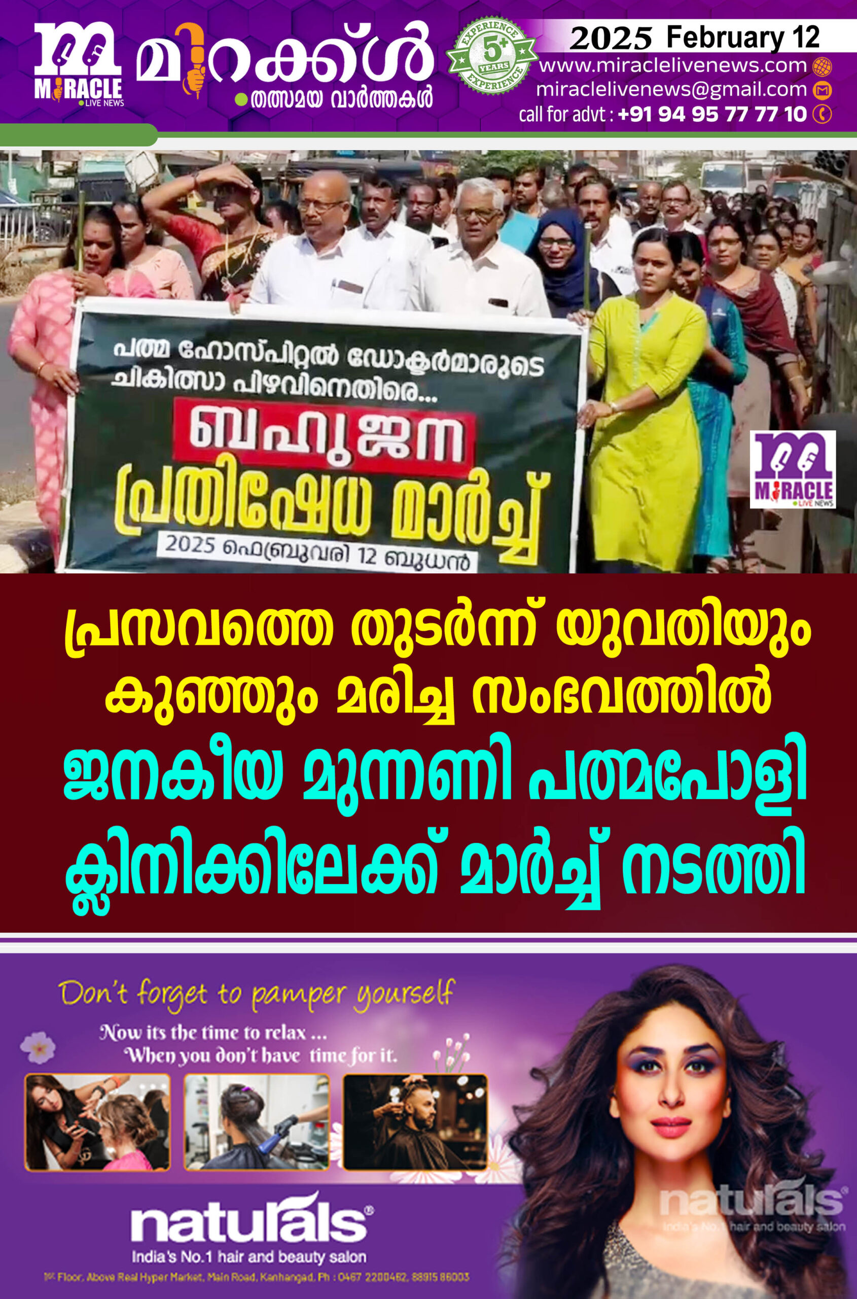 ഫെബ്രുവരി 3 ന് ഉച്ചയോടെയാണ് പ്രസവത്തിനായി ചേറ്റുകുണ്ടിലെ സാഗറിന്റെ ഭാര്യ ദീപ (36) കാഞ്ഞങ്ങാട് പത്മ ഹോസ്പിറ്റല് പ്രവേശിപ്പിച്ചത്. രാത്രിയോടെ യുവതി പെണ്കുഞ്ഞിന് ജന്മം നല്കിയിരുന്നു. ഉടനെ കുട്ടി മരിക്കുകയും ചെയ്തു.രക്തസ്രാവത്തെ തുടര്ന്ന് ദീപയെ പരിയാരം മെഡിക്കല് കോളേജിലേക്ക് മാറ്റിയ 4 ന് പുലര്ച്ചെ 3.30 മണിയോടെ യുവതിയും മരിച്ചു.