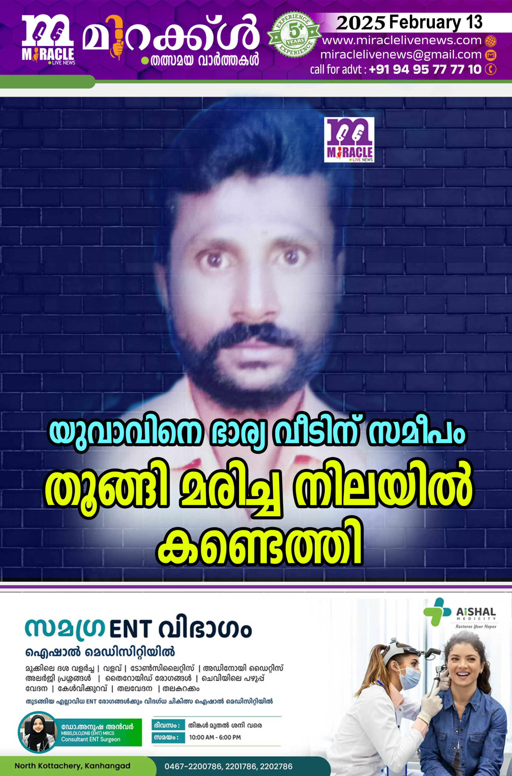 യുവാവിനെ ഭാര്യ വീടിന് സമീപം തൂങ്ങി മരിച്ച നിലയില്‍ കണ്ടെത്തി