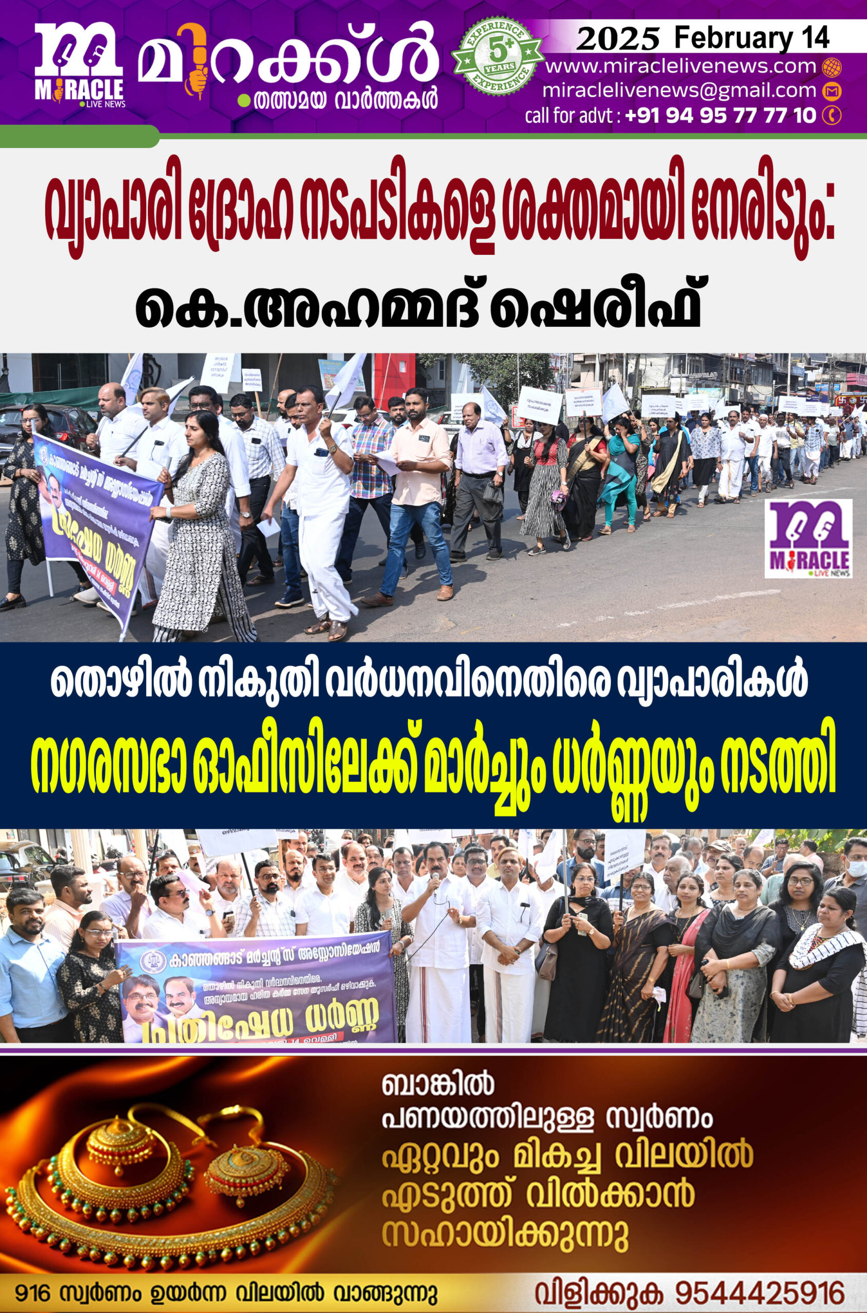 വ്യാപാരി ദ്രോഹ നടപടികളെ ശക്തമായി നേരിടും:കെ.അഹമ്മദ് ഷെരീഫ്; തൊഴില്‍ നികുതി വര്‍ധനവിനെതിരെ വ്യാപാരികള്‍ നഗരസഭാ ഓഫീസിലേക്ക് മാര്‍ച്ചും ധര്‍ണ്ണയും നടത്തി