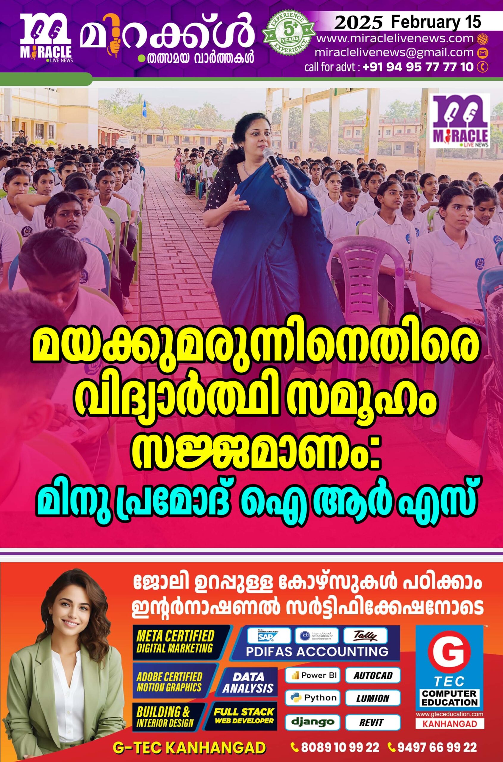 മയക്കുമരുന്നിനെതിരെ വിദ്യാര്‍ത്ഥി സമൂഹം സജ്ജമാകണം: മിനു പ്രമോദ് ഐ ആര്‍ എസ്