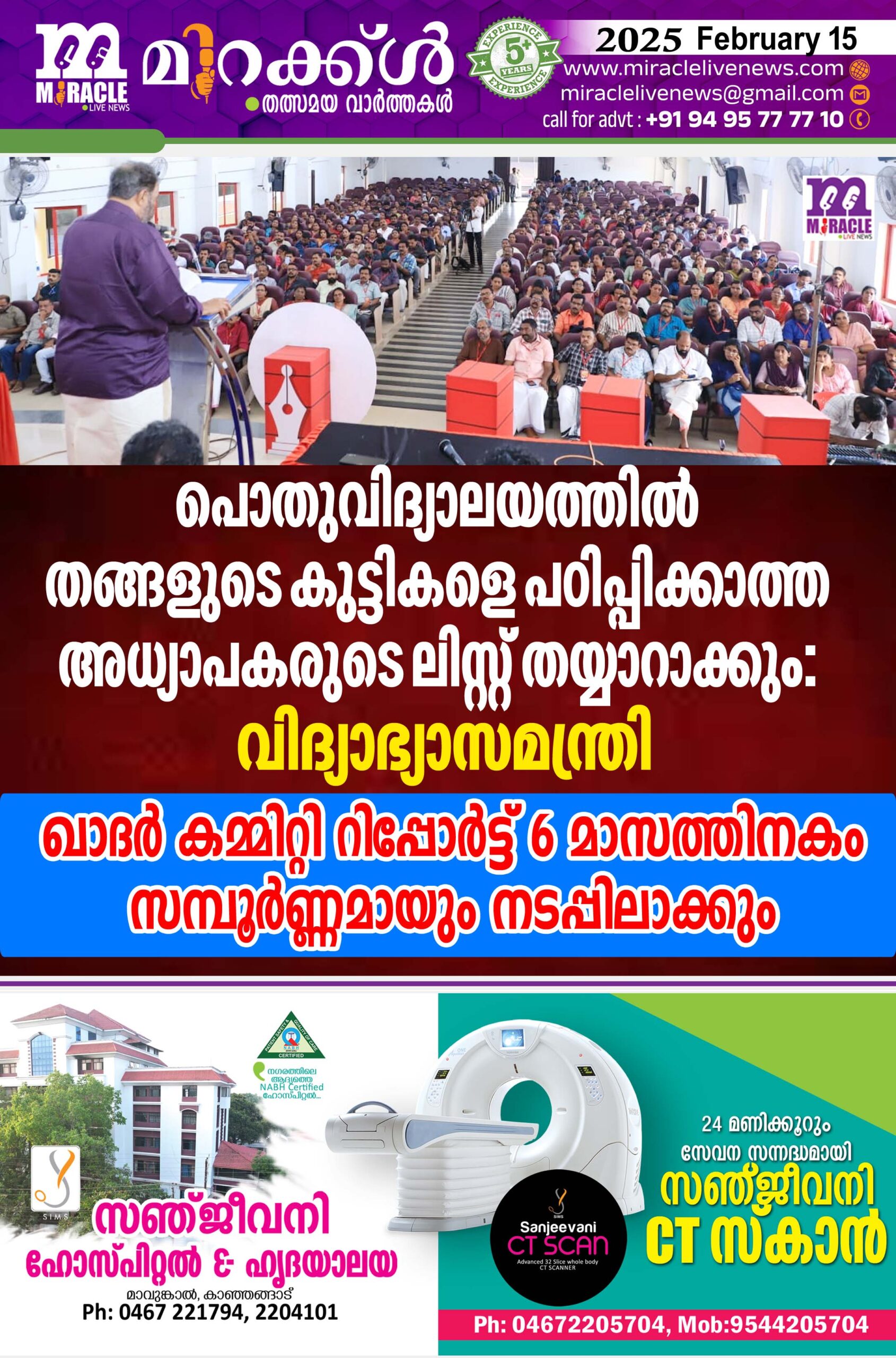 പൊതുവിദ്യാലയത്തില്‍ തങ്ങളുടെ കുട്ടികളെ പഠിപ്പിക്കാത്ത അധ്യാപകരുടെ ലിസ്റ്റ് തയ്യാറാക്കും: വിദ്യാഭ്യാസമന്ത്രി; ഖാദര്‍ കമ്മിറ്റി റിപ്പോര്‍ട്ട് 6 മാസത്തിനകം സമ്പൂര്‍ണ്ണമായും നടപ്പിലാക്കും