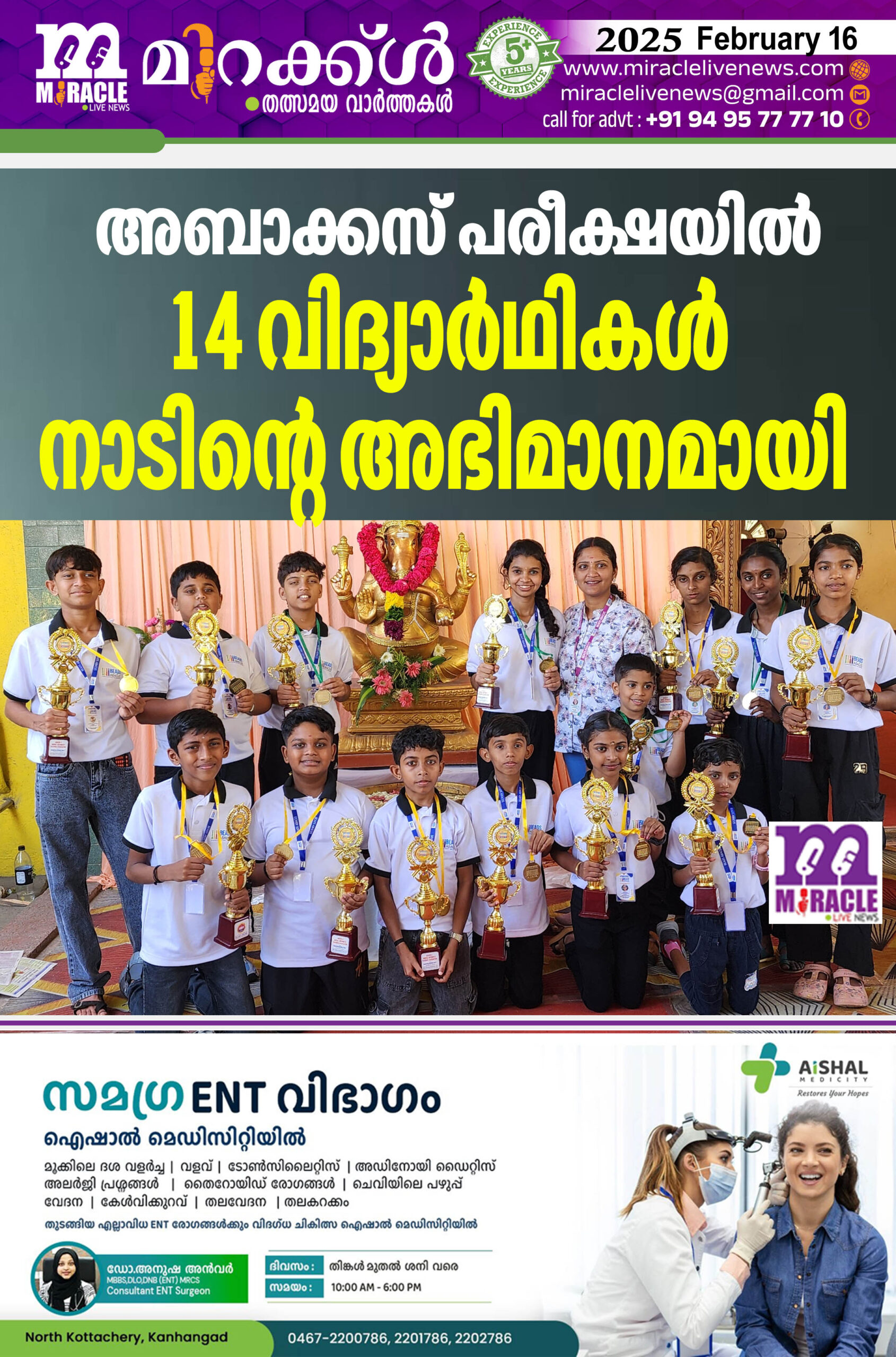 14 വിദ്യാര്ഥികള് നാടിന്റെ അഭിമാനമായി. നാല് പേര് ചാമ്പ്യന് ഓഫ് ചാമ്പ്യന് പട്ടവും, പത്ത് ചാമ്പ്യന് പട്ടവും കരസ്ഥമാക്കിയത്.