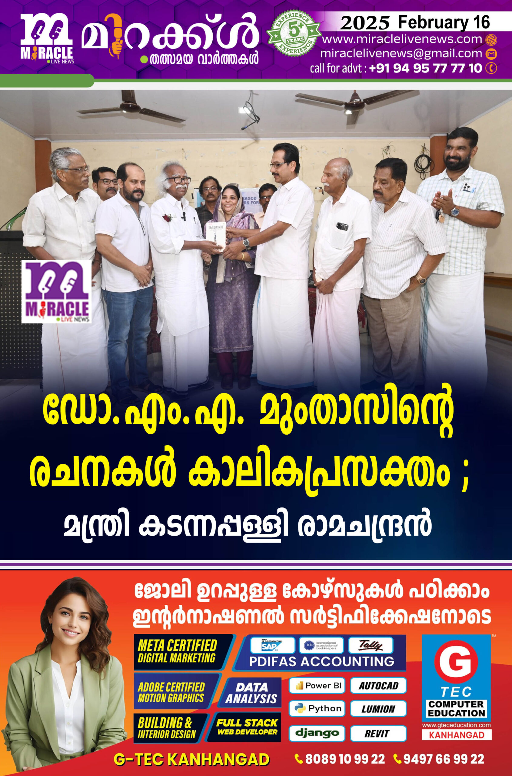 ഡോ.എം.എ. മുംതാസിന്റെ രചനകള് കാലികപ്രസക്തം ; മന്ത്രി കടന്നപ്പള്ളി രാമചന്ദ്രന്