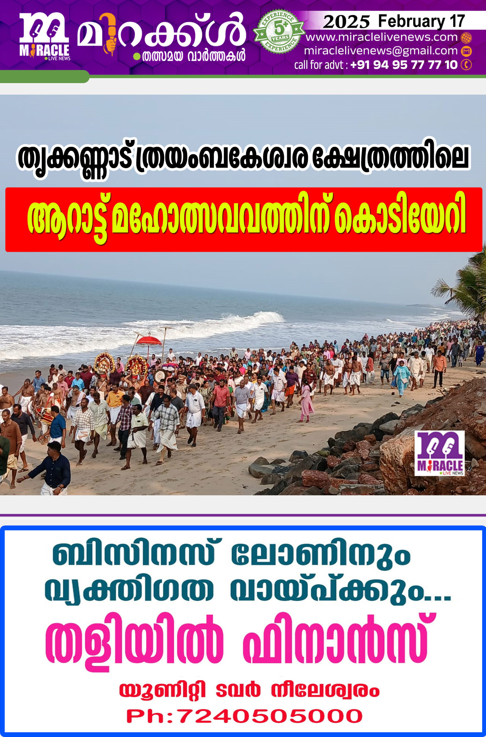 തൃക്കണ്ണാട് ത്രയംബകേശ്വര ക്ഷേത്രത്തിലെ ആറാട്ട് മഹോത്സവവത്തിന് കൊടിയേറി