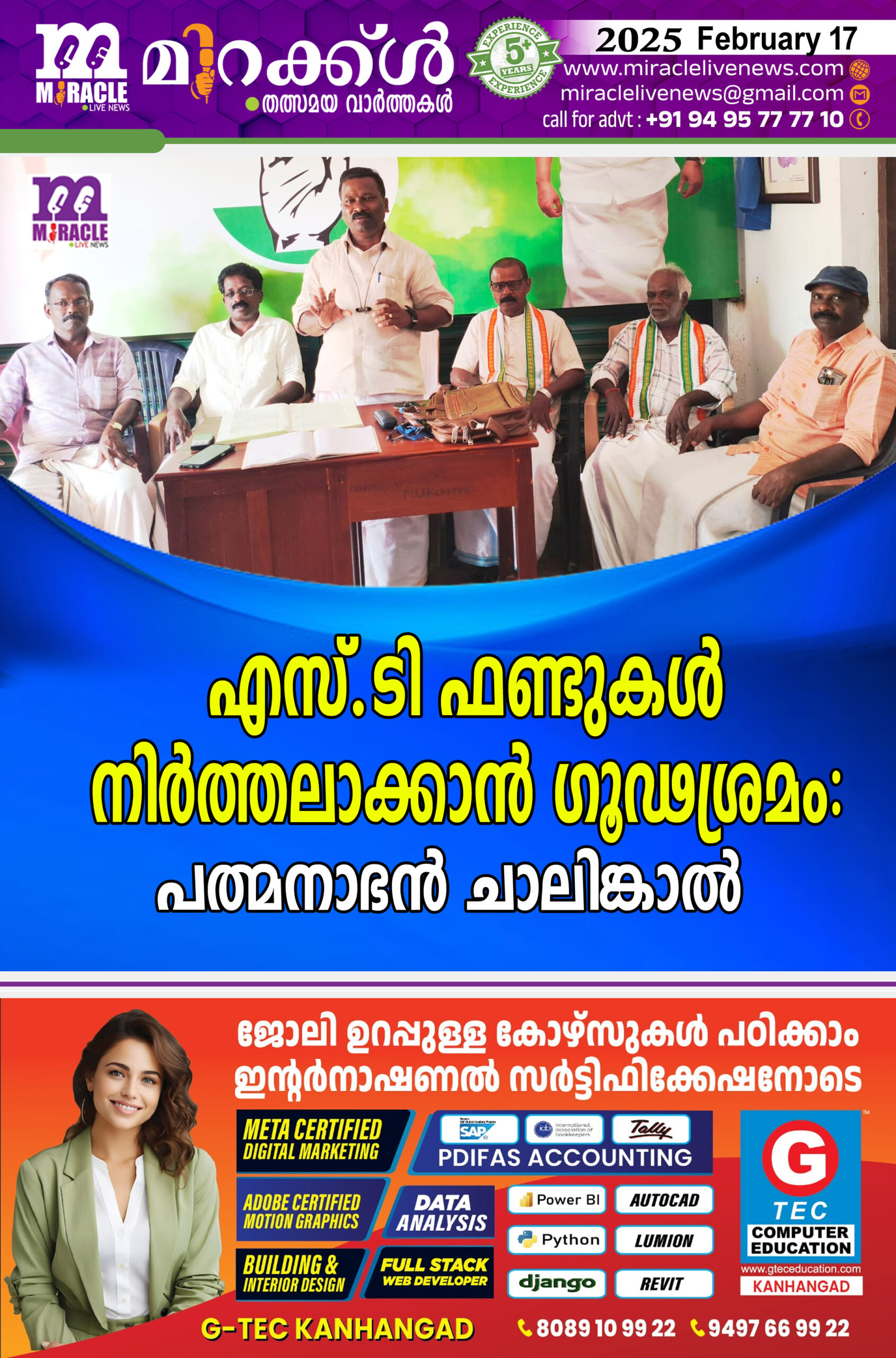 എസ്. ടി ഫണ്ടുകള് നിര്ത്തലാക്കാന് ഗൂഡശ്രമം: പത്മനാഭന് ചാലിങ്കാല്