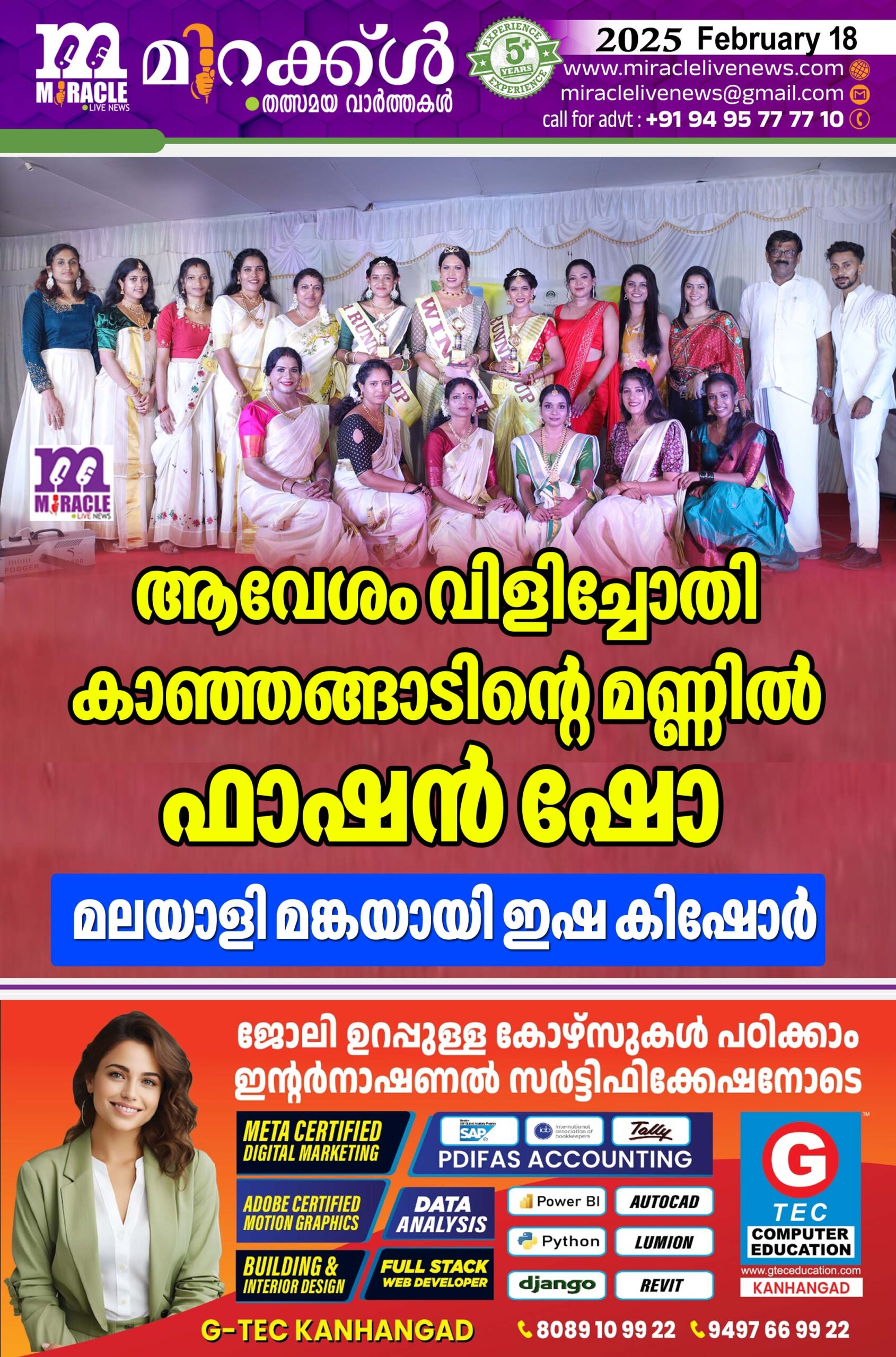 വിവിധയിടങ്ങളില് നിന്നുള്ള 13 സുന്ദരികളില് ട്രാന്സ്ജെന്ഡര് ഇഷ കിഷോര് ഒന്നാം സ്ഥാനം നേടി.