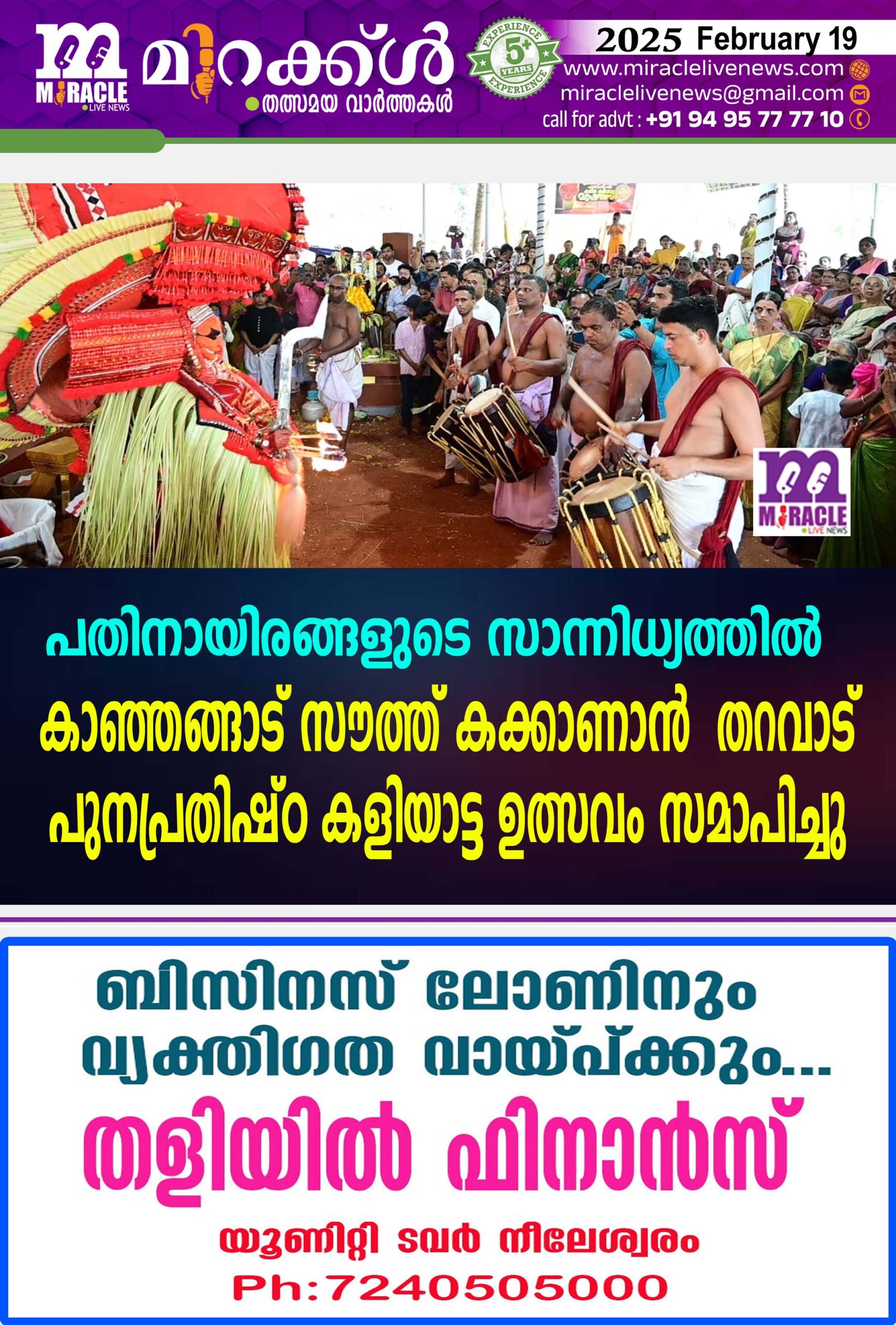 പതിനായിരങ്ങളുടെ സാന്നിധ്യത്തില്‍ കാഞ്ഞങ്ങാട് സൗത്ത് കക്കാണാന്‍ തറവാട് പുനപ്രതിഷ്ഠ കളിയാട്ട ഉത്സവം സമാപിച്ചു