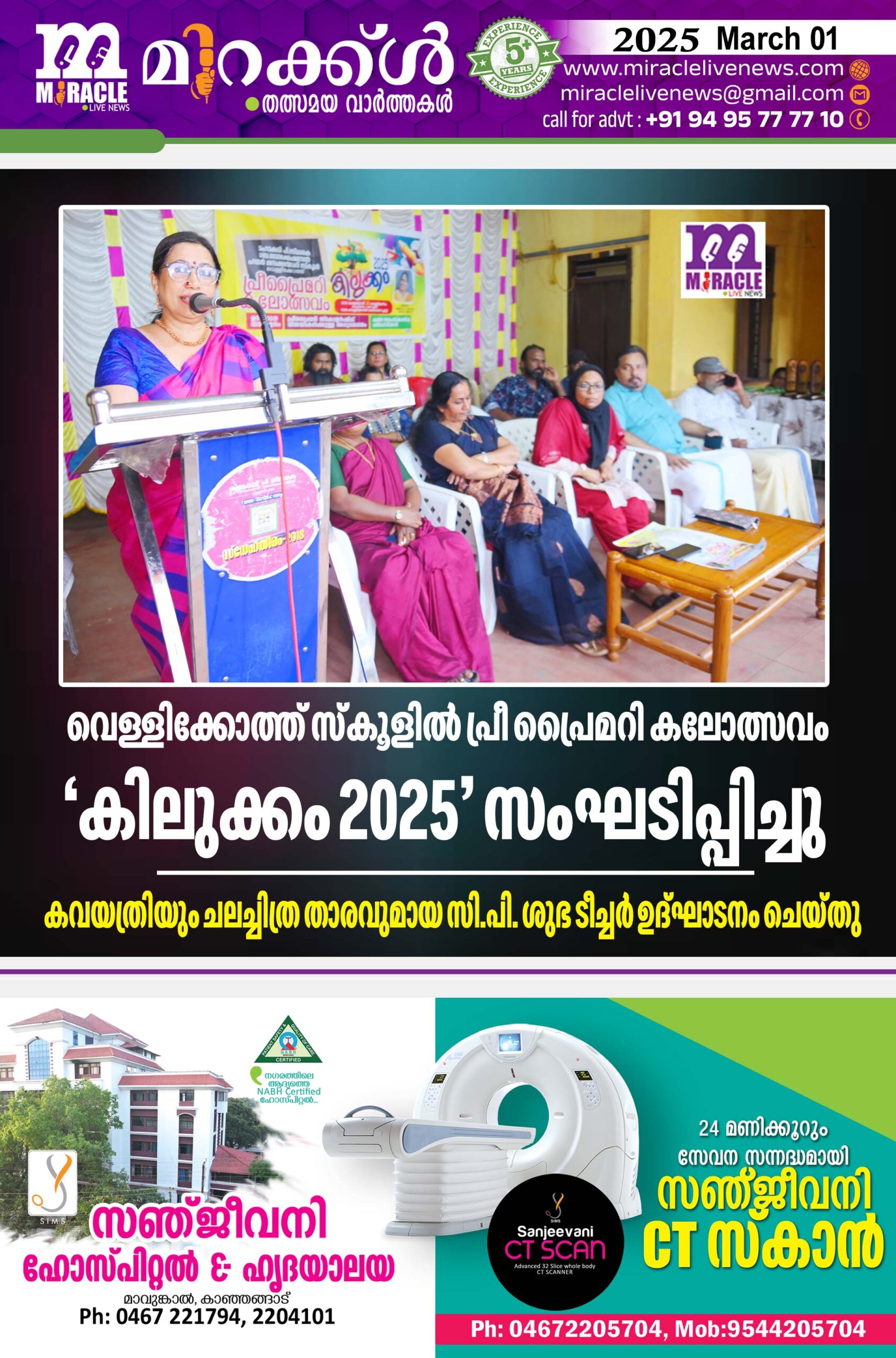 വെള്ളിക്കോത്ത് സ്‌കൂളില്‍ പ്രീ പ്രൈമറി കലോത്സവം ‘കിലുക്കം 2025’ സംഘടിപ്പിച്ചു; കവയത്രിയും ചലച്ചിത്ര താരവുമായ സി.പി. ശുഭ ടീച്ചര്‍ ഉദ്ഘാടനം ചെയ്തു