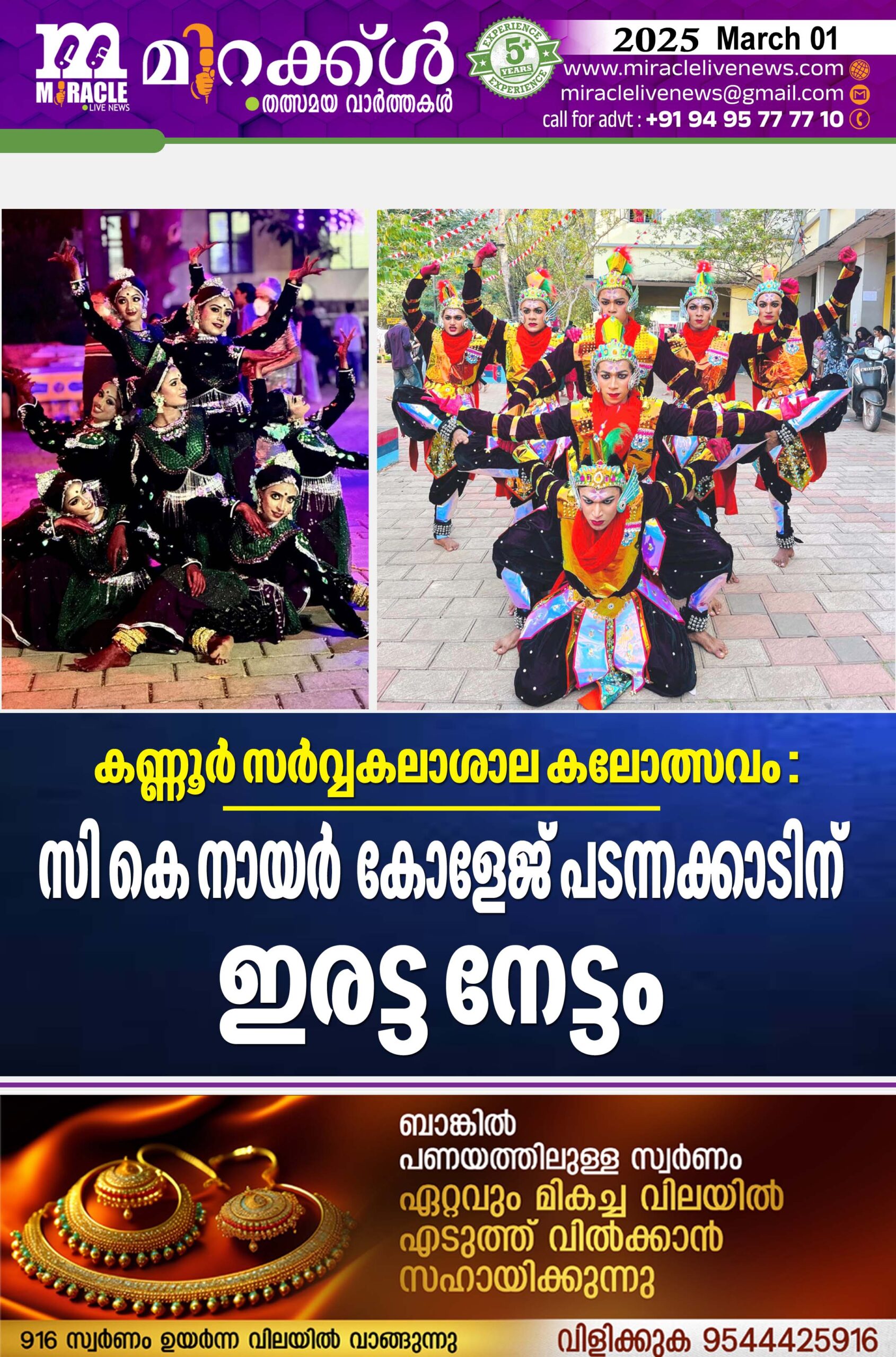 കണ്ണൂര് സര്വ്വകലാശാല കലോത്സവം : സി കെ നായര് കോളേജ് പടന്നക്കാടിന് ഇരട്ട നേട്ടം