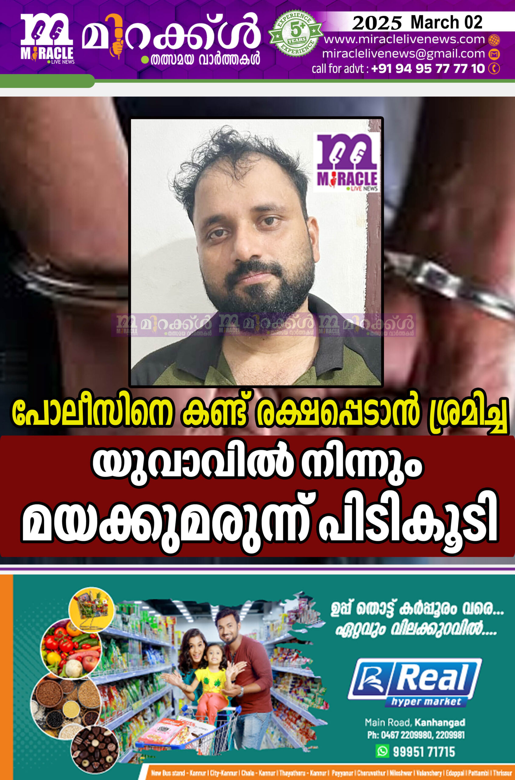 പോലീസിനെ കണ്ട് രക്ഷപ്പെടാന്‍ ശ്രമിച്ച യുവാവില്‍ നിന്നും മയക്കുമരുന്ന് പിടികൂടി