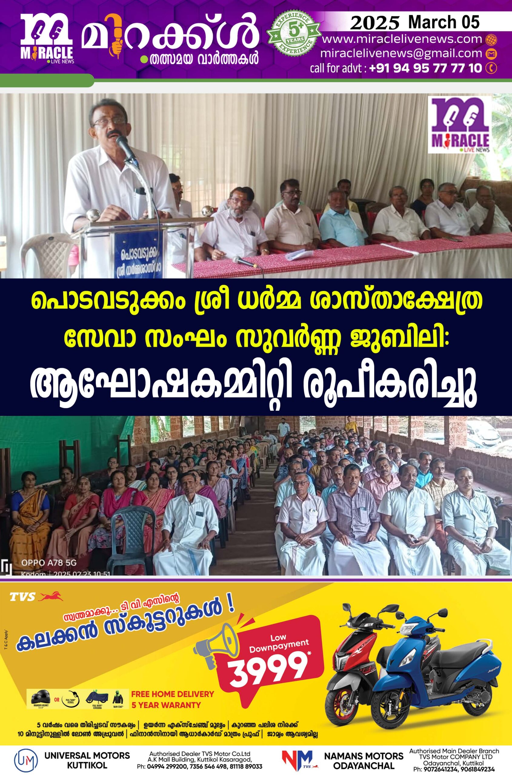 ഇരിയ :പൊടവടുക്കം ശ്രീ ധര്മ്മശാസ്താക്ഷേത്രസേവാസംഘത്തിന്റെ അമ്പതാം വാര്ഷികാഘോഷ കം ‘സുവര്ണ്ണോത്സവം 2025