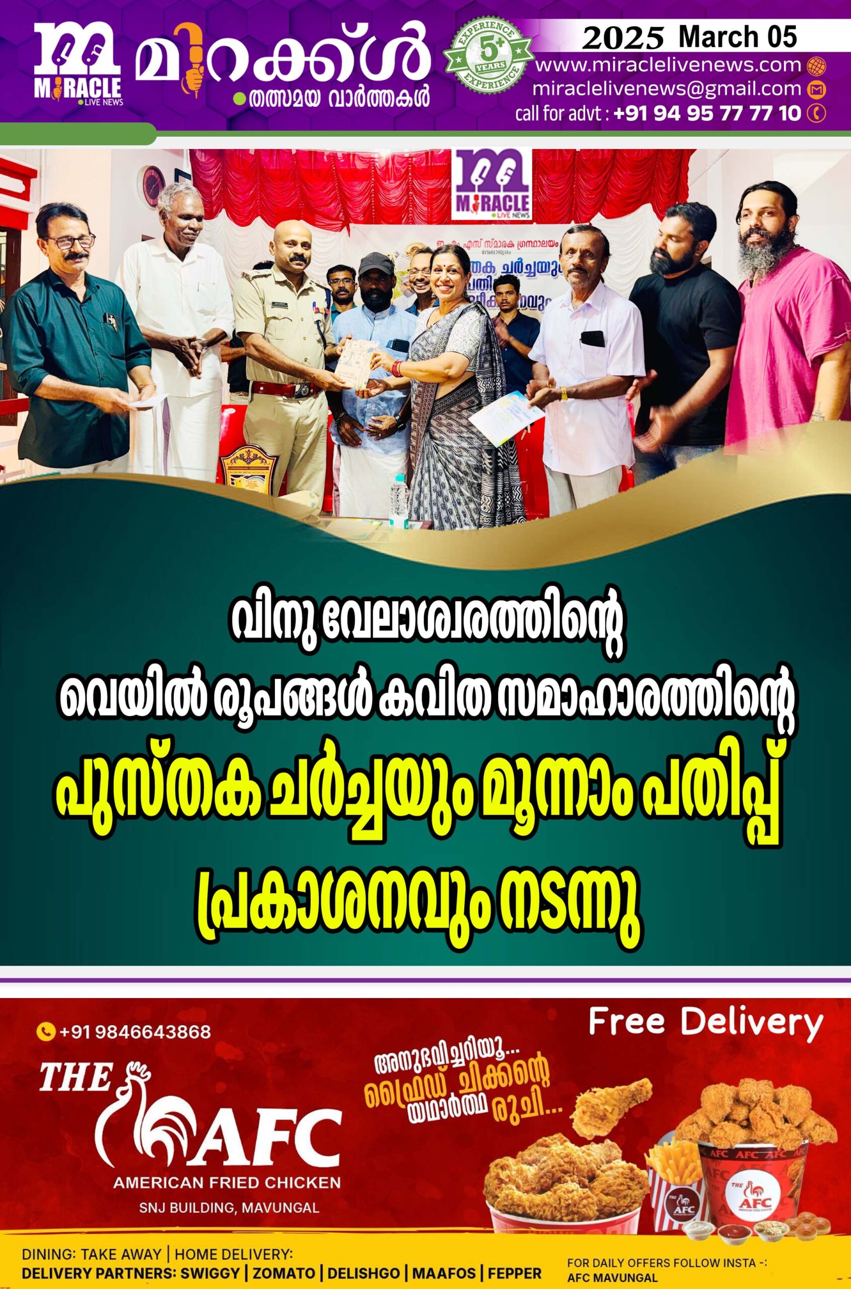വിനു വേലാശ്വരത്തിന്റെ വെയില് രൂപങ്ങള് കവിത സമാഹാരത്തിന്റെ പുസ്തക ചര്ച്ചയും മൂന്നാം പതിപ്പ് പ്രകാശനവും നടന്നു