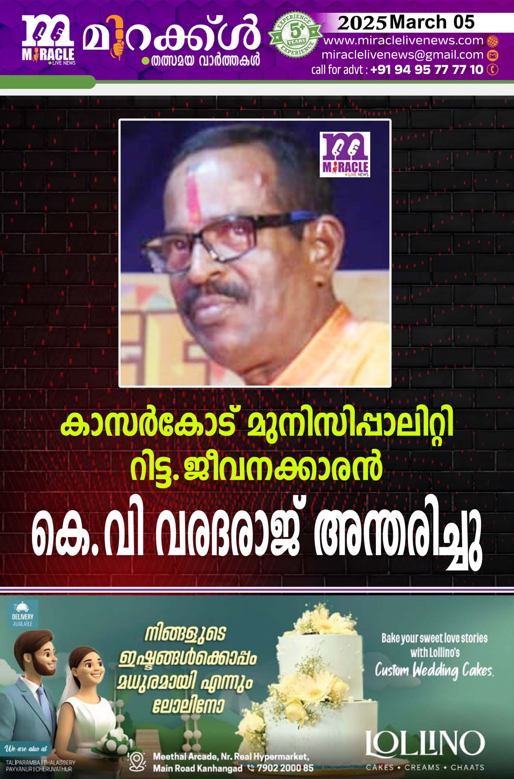 കാസര്‍കോട് മുനിസിപ്പാലിറ്റി റിട്ട. ജീവനക്കാരന്‍ കെ.വി വരദരാജ് അന്തരിച്ചു