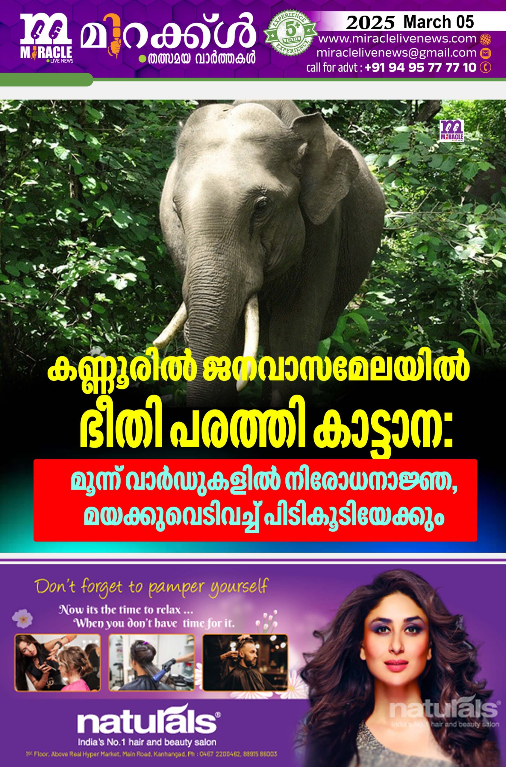 കണ്ണൂരില്‍ ജനവാസമേലയില്‍ ഭീതി പരത്തി കാട്ടാന: മൂന്ന് വാര്‍ഡുകളില്‍ നിരോധനാജ്ഞ, മയക്കുവെടിവച്ച് പിടികൂടിയേക്കും