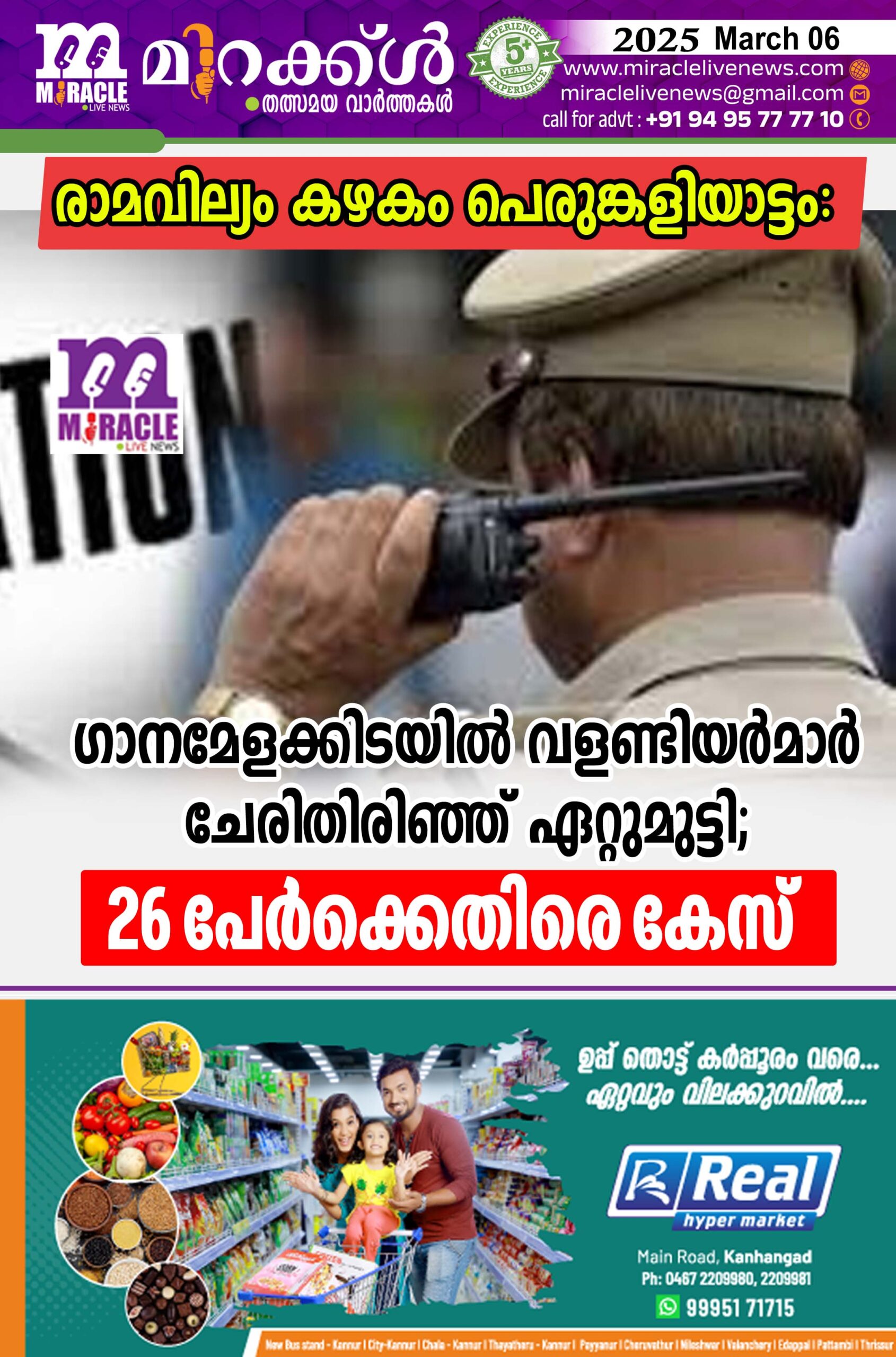 രാമവില്യം കഴകം പെരുങ്കളിയാട്ടം: ഗാനമേളക്കിടയില് വളണ്ടിയര്മാര് ചേരിതിരിഞ്ഞ് ഏറ്റുമുട്ടി; 26 പേര്ക്കെതിരെ കേസ്