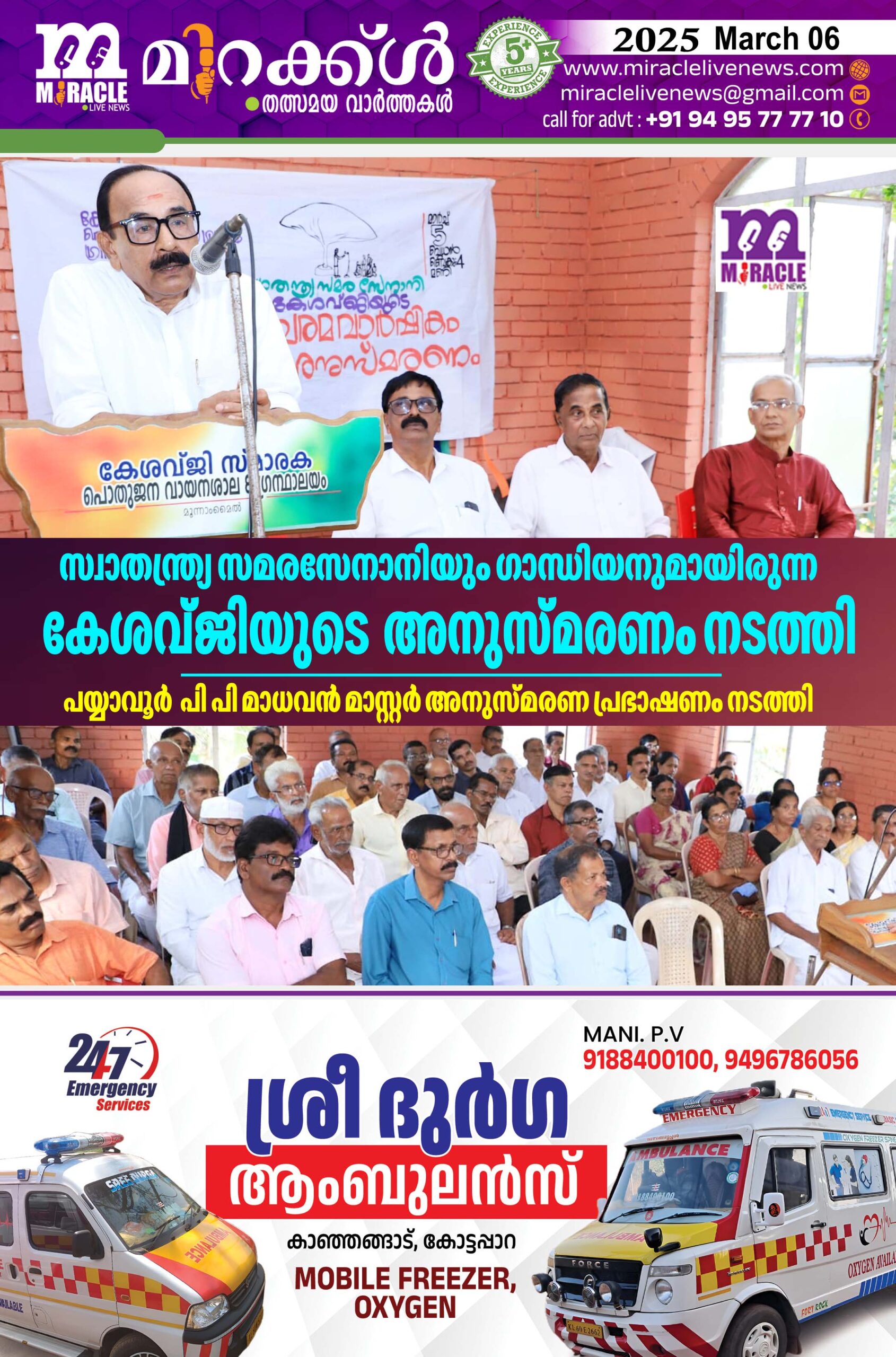 സ്വാതന്ത്ര്യ സമരസേനാനിയും ഗാന്ധിയനുമായിരുന്ന കേശവ്ജിയുടെ അനുസ്മരണം നടത്തി; പയ്യാവൂര്‍ പി പി മാധവന്‍ മാസ്റ്റര്‍ അനുസ്മരണ പ്രഭാഷണം നടത്തി
