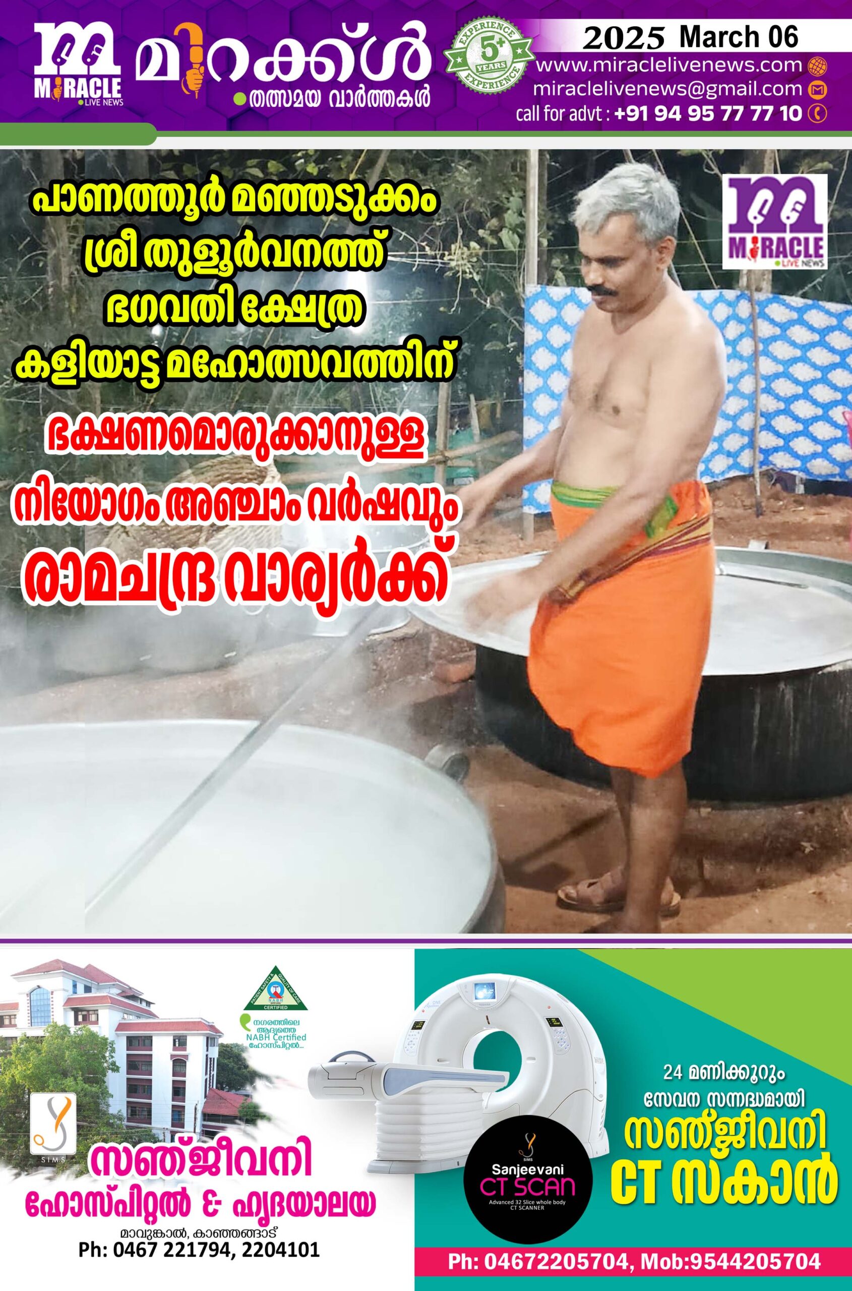 പാണത്തൂര് മഞ്ഞടുക്കം ശ്രീ തുളൂര്വനത്ത് ഭഗവതി ക്ഷേത്ര കളിയാട്ട മഹോത്സവത്തിന് ഭക്ഷണമൊരുക്കാനുള്ള നിയോഗം അഞ്ചാം വര്ഷവും രാമചന്ദ്ര വാര്യര്ക്ക്