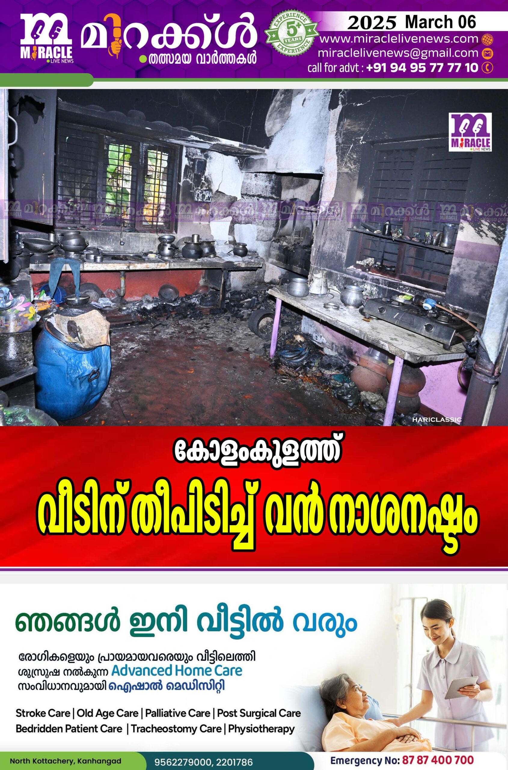 കോളംകുളത്ത് വീടിന് തീപിടിച്ച് വന് നാശനഷ്ടം