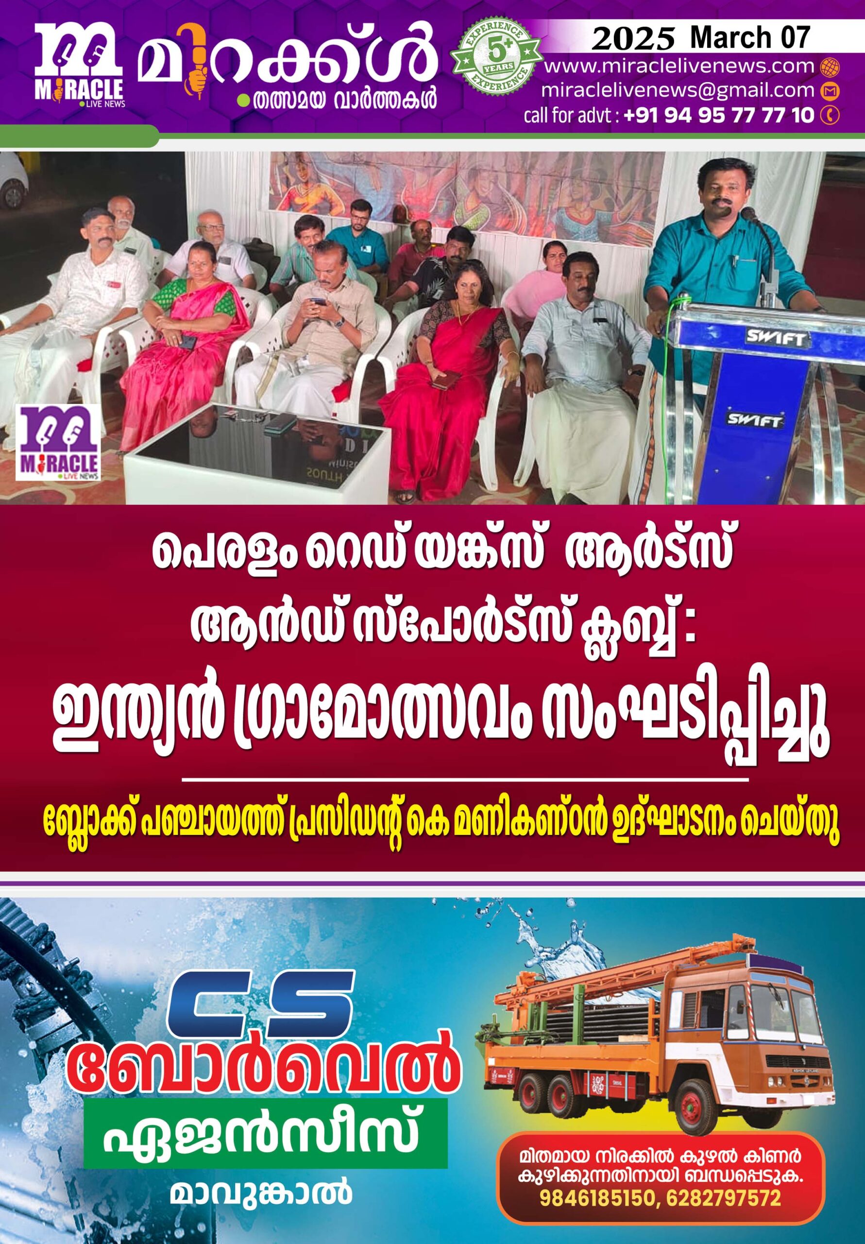 കാഞ്ഞങ്ങാട് : പെരളം റെഡ് യങ്ക്സ് ആര്ട്സ് ആന്ഡ് സ്പോര്ട്സ് ക്ലബ്ബിന്റെ ആഭിമുഖ്യത്തില് കേരള സര്ക്കാരിന്റെ സാംസ്കാരിക വിനിമയ കേന്ദ്രമായ ഭാരത് ഭവന്, കേന്ദ്രസര്ക്കാരിന് കീഴില് പ്രവര്ത്തിക്കുന്ന സൗത്ത് സോണ് കള്ച്ചറല് സെന്റര് എന്നിവയുടെ സഹകരണത്തോടെയാണ് ഇന്ത്യന് ഗ്രാമോത്സവം സംഘടിപ്പിച്ചത്. ബ്ലോക്ക് പഞ്ചായത്ത് പ്രസിഡന്റ് കെ മണികണ്ഠന് ഉദ്ഘാടനം ചെയ്തു. പുല്ലൂര് പെരിയ പഞ്ചായത്ത് പ്രസിഡന്റ് സി കെ അരവിന്ദന് അധ്യക്ഷത വഹിച്ചു. ബിനുപെരളം സ്വാഗതം പറഞ്ഞു. അജാനൂര് പഞ്ചായത്ത് പ്രസിഡണ്ട് ടി.ശോഭ ,കെ.സീത ,എം.വി നാരായണന്, പ്രോഗ്രാംകണ്വീനര് രാജേഷ് കുമാര് , വി.നാരായണന് ,പിനാരായണന് ,പി.കുഞ്ഞിക്കേളു ,ടി. ബിന്ദു , ഹരീഷ് ടി എന്നിവര് സംസാരിച്ചു മനുഷ്.ടി നന്ദിയും പറഞ്ഞു. തുടര്ന്ന് മഹാരാഷ്ട്ര ,തെലുഗാന ,ഹരിയാന ,തമിഴ്നാട് .എന്നീ സംസ്ഥാനങ്ങളിലെ 60 കലാകാരമാര് ചേര്ന്ന് വിവിധ കലാപരിപാടികള് അവതരിപ്പിച്ചു.