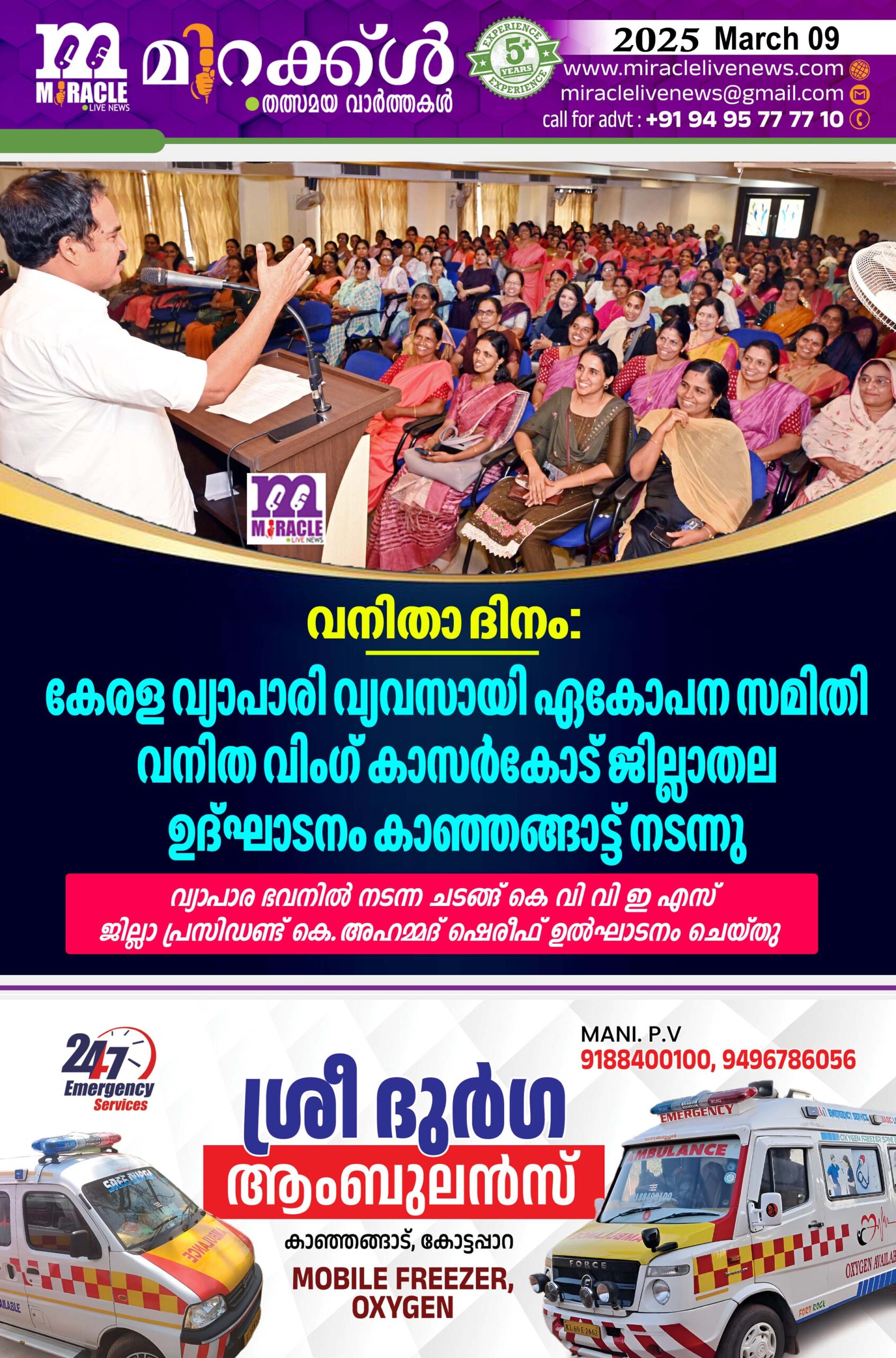 വനിതാ വിംഗ് ജില്ല ജനറല് സെക്രട്ടറി മായ രാമചന്ദ്രന് സ്വാഗതം പറഞ്ഞു. കാഞ്ഞങ്ങാട് മര്ച്ചന്റ്സ് അസോസിയേഷന് പ്രസിഡണ്ട് സി.കെ.ആസീഫ് മുഖ്യാതിഥിയായി. ‘സര്ക്കാര് ക്ഷേമ പദ്ധതിയും ആനുകൂല്യങ്ങളും ‘എന്ന വിഷയത്തില് വി.അബ്ദുള് സലാം (എക്സിക്യൂട്ടിവ് ഓഫീസര് ഐടി / ഷോപ്പ്സ് ആന്റ് കമഴ്സില് എസ്റ്റാബ്ലിഷ്മെന്റ്) ‘ആരോഗ്യവും കരുത്തും എന്ന വിഷയത്തില് ഡോ: പി.റോഷിത (എം ഡി, ഡോ.റോഷിതാസ് വൂമണ് ഹെല്ത്ത് ക്ലീനിക്,കാസര്ഗോഡ് ) എന്നിവരും ക്ലാസെടുത്തു.