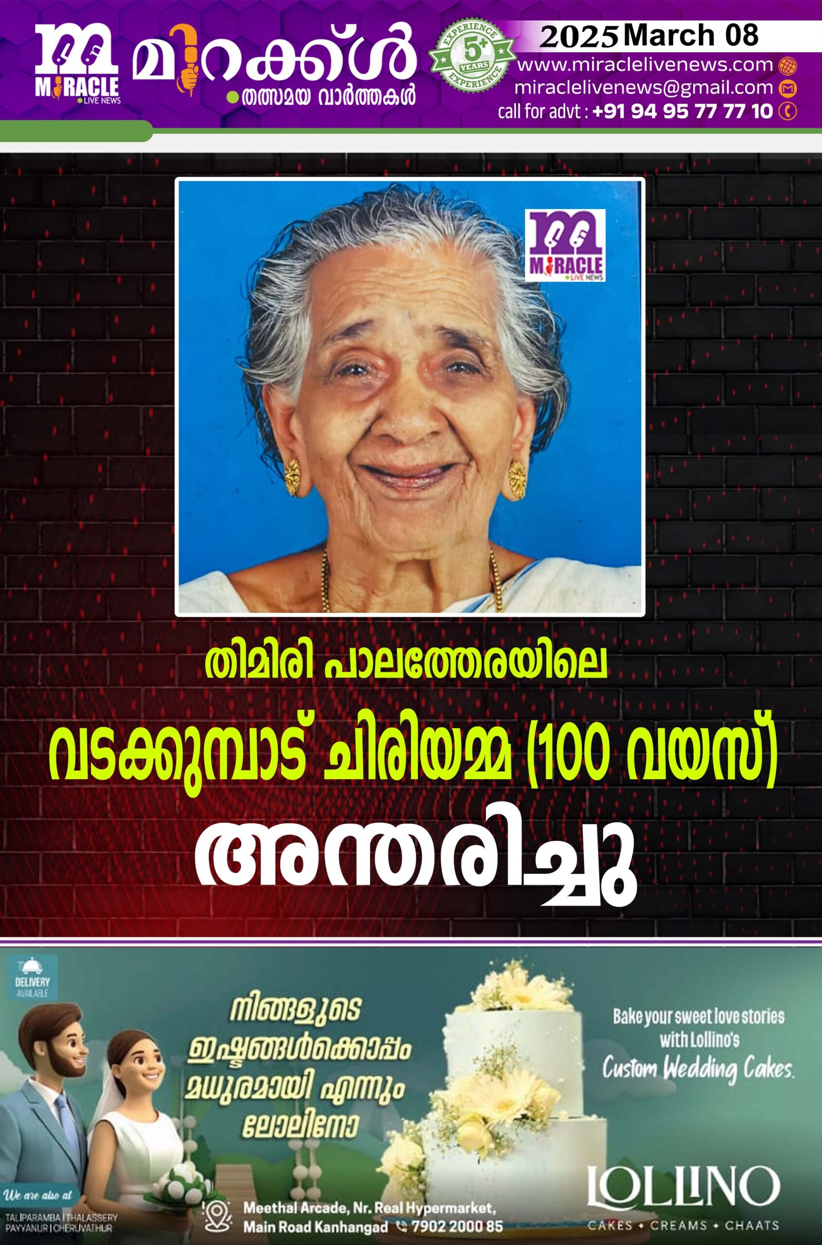 തിമിരി പാലത്തേരയിലെ വടക്കുമ്പാട് ചിരിയമ്മ (100 വയസ്) അന്തരിച്ചു