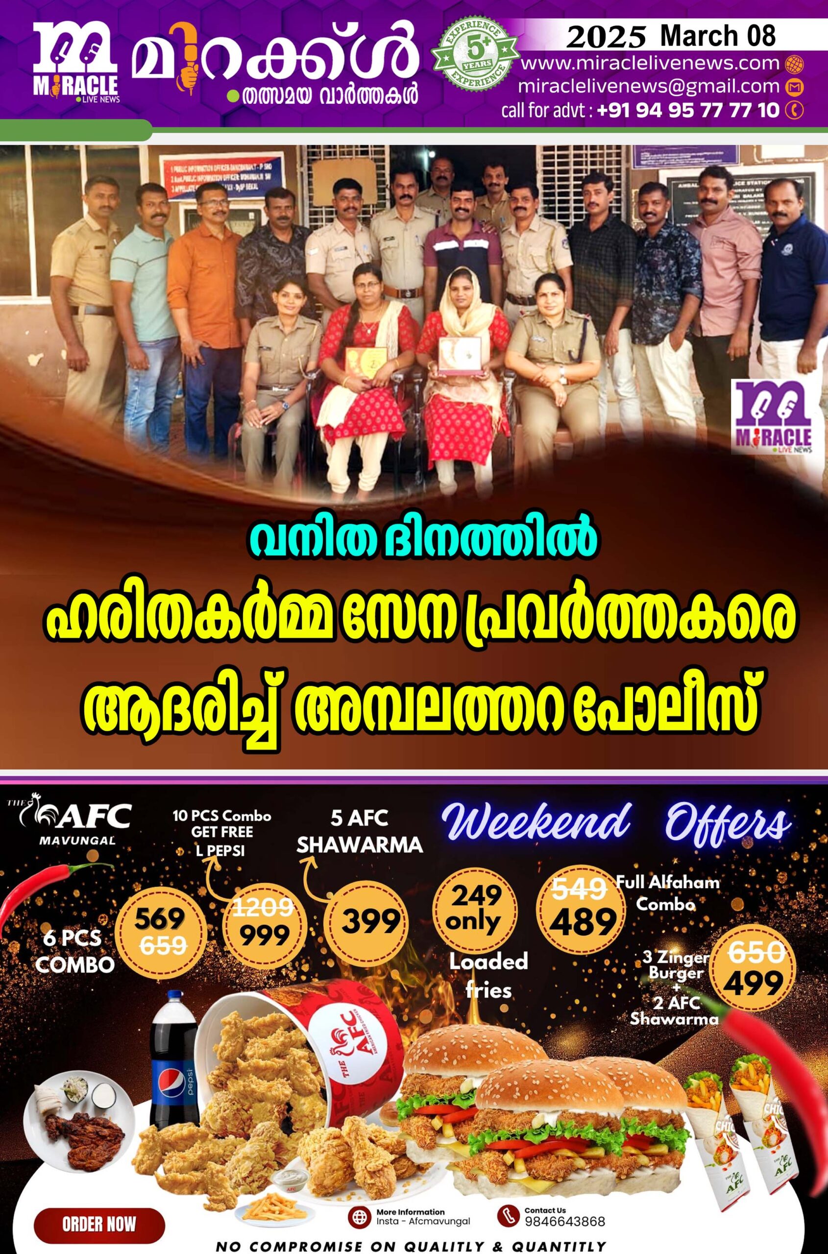 വനിത ദിനത്തില്‍ ഹരിതകര്‍മ്മ സേന പ്രവര്‍ത്തകരെ ആദരിച്ച് അമ്പലത്തറ പോലീസ്