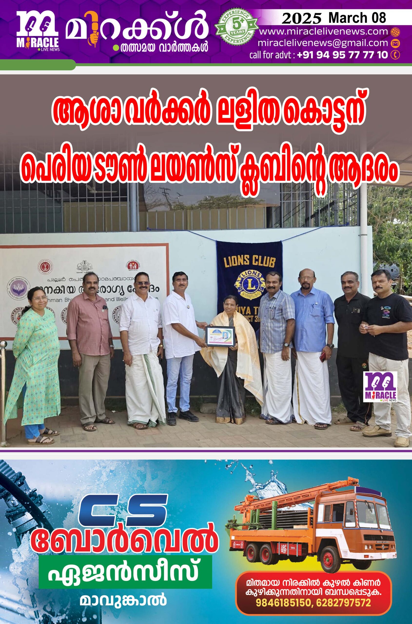 പെരിയ :അന്താരാഷ്ട്ര വനിതാ ദിനത്തിന്റെ ഭാഗമായി പെരിയ കായക്കുളത്തെ മുതിര്ന്ന ആശാ വര്ക്കര് ലളിത കൊട്ടനെ പെരിയ ടൗണ് ലയണ്സ് ക്ലബ് പെരിയ ബ്ലോക്ക് കമ്യൂണിറ്റി ഹെല്ത്ത് സെന്ററില് വെച്ച് ആദരിച്ചു. ക്ലബ്ബ് പ്രസിഡന്റ് അബ്ദുള്ള ഷാഫി, സെക്രട്ടറി കെ. ബാലകൃഷ്ണന് നായര്, ട്രഷറര് പി. കരുണാകരന് നായര്, പുല്ലൂര് പെരിയ ഗ്രാമ പഞ്ചായത്ത് മെമ്പറും എക്സ്റ്റന്ഷന് ചെയര്മാനുമായ ടി രാമകൃഷ്ണന് നായര്, ഡോ. എ എസ് ദിവ്യ, ക്ലബ്ബ് അംഗങ്ങളായ ലയണ് ബാബു മോയോലം, പത്മനാഭന് പെരിയ, രവീന്ദ്രന് പെരിയ എന്നിവര്സംബന്ധിച്ചു.