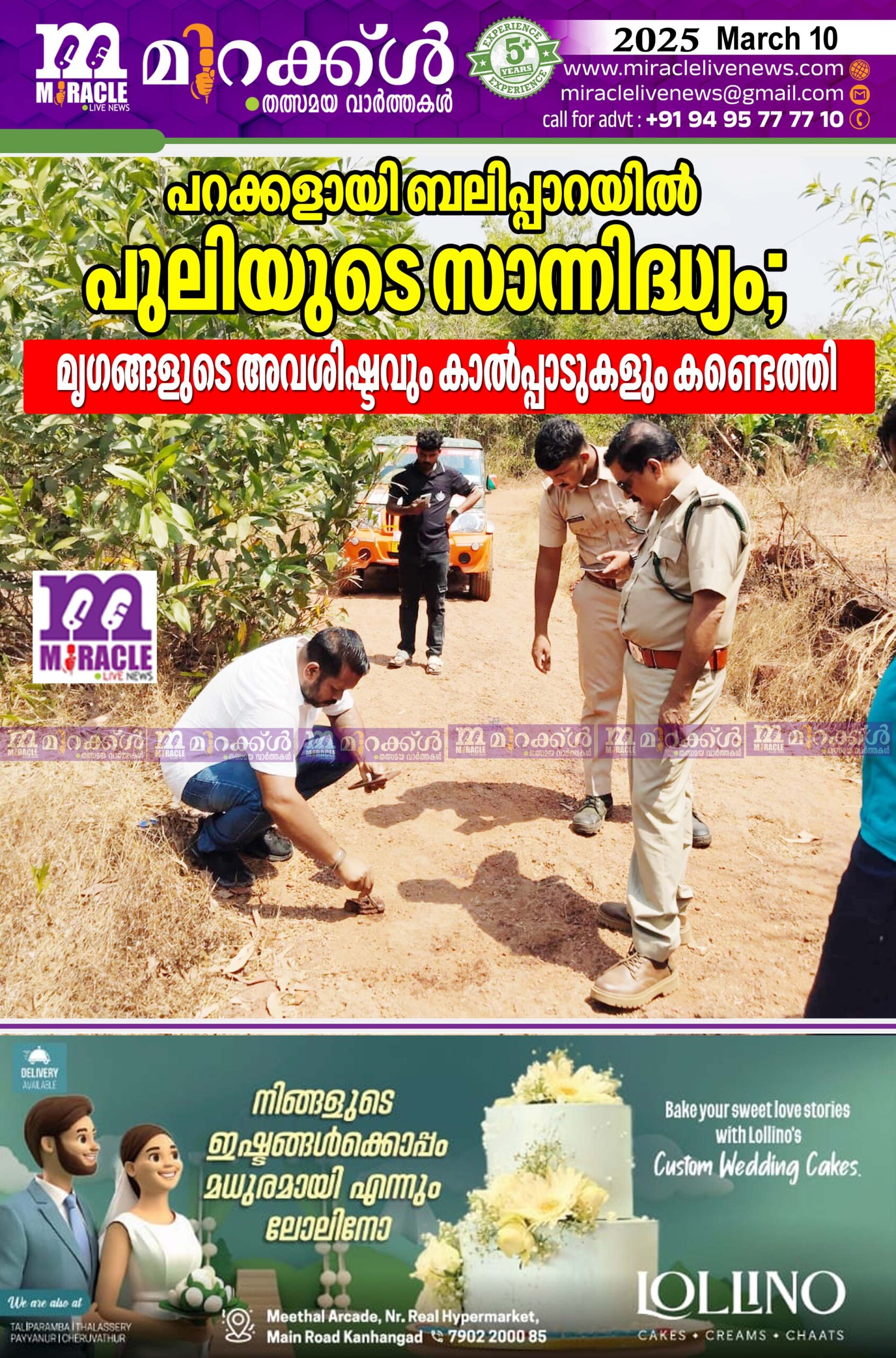 പറക്കളായി ബലിപ്പാറയില്‍ പുലിയുടെ സാന്നിദ്ധ്യം; മൃഗങ്ങളുടെ അവശിഷ്ടവും കാല്‍പ്പാടുകളും കണ്ടെത്തി