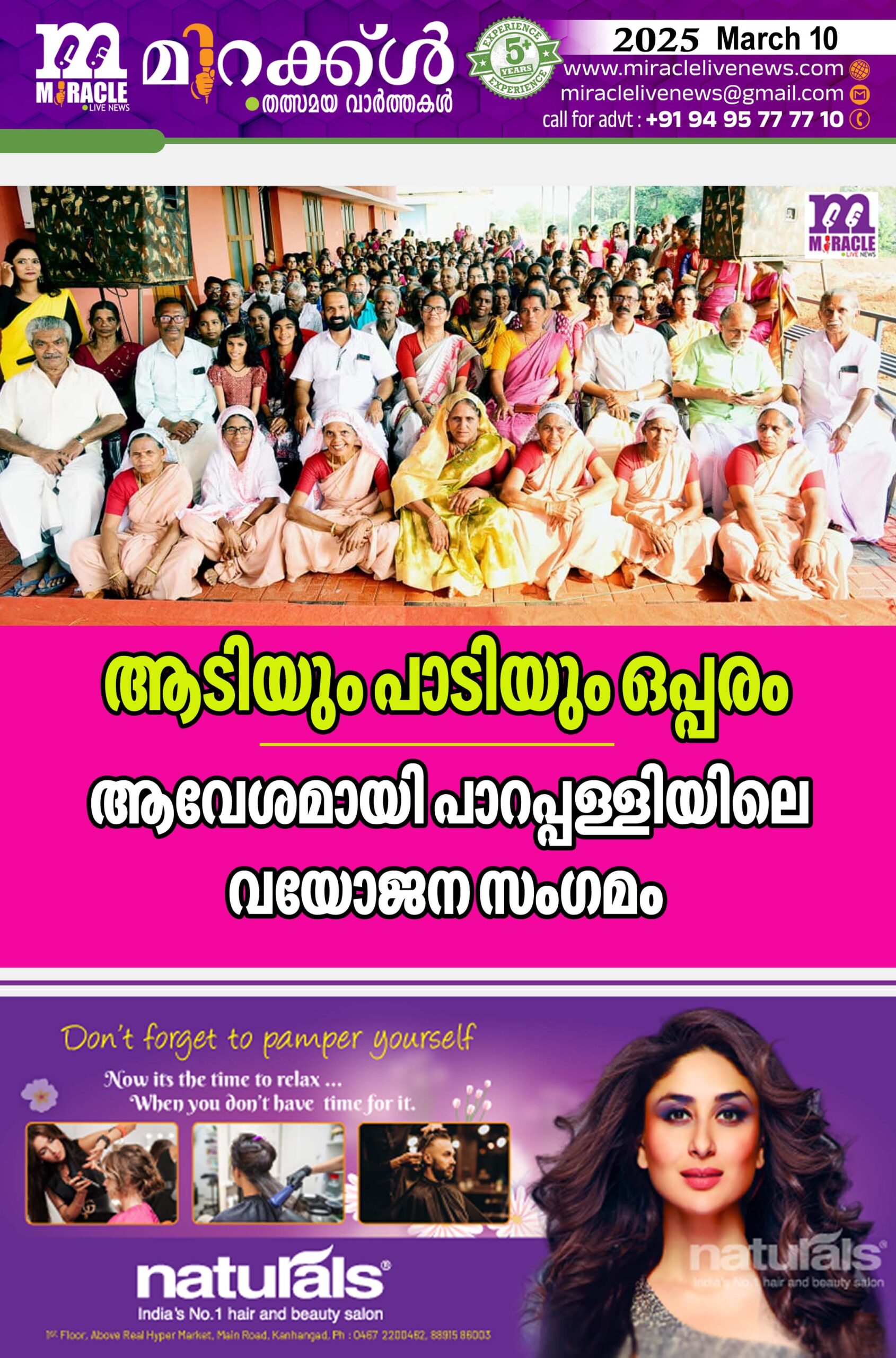 പാറപ്പള്ളി :കോടോംബേളൂര് ഗ്രാമപഞ്ചായത്ത് 19-ാം വാര്ഡിന്റെ വയോജന സംഗമം ‘ഒപ്പരം ‘പാറപ്പള്ളിയില് പരപ്പ ബ്ലോക്ക് പഞ്ചായത്ത് പ്രസിഡന്റ് എം.ലക്ഷ്മി ഉദ്ഘാടനം ചെയ്തു.വാര്ഡില് രൂപീകരിച്ച സായാഹ്നം വയോ ക്ലബ്ബിന്റെ നേതൃത്വത്തില് 11 അയല് സഭാ കൂട്ടായ്മകളും പ്രവര്ത്തിച്ചു വരികയാണ്. ഇവയുടെ നേതൃത്വത്തില് 250ളം ആളുകള് 50 ഐറ്റങ്ങളിലായി വിവിധങ്ങളായ പരിപാടികളാണ് അവതരിപ്പിച്ചത്.പ്രായം മറന്ന് അമ്മമാര് അവതരിപ്പിച്ച ഒപ്പന,സംഘനൃത്തം, സംഘഗാനം എന്നിവയും ലാലൂര് പങ്കജാക്ഷി, ചുണ്ണംകുളം കല്യാണി എന്നിവരുടെ നൃത്തവും കാണികളില് ആശ്ചര്യവും ആവേശവും വിതറി. മാപ്പിളപ്പാട്ട്,പൂരക്കളി – കോല്ക്കളി പാട്ട്, നാടന്പ്പാട്ട്, നാട്ടിപ്പാട്ട്, കവിത, സിനിമാഗാനം എന്നിവയെല്ലാം വിവിധ അയല് സഭയില് നിന്നും വന്നവര് ആവേശത്തോടെ അവതരിപ്പിച്ചു. എഴുപതും എണ്പതും വയസ്സ് പിന്നിട്ട അമ്മൂമ്മമാര് ആദ്യമായി സ്റ്റേജില് കയറുന്നവരും ഇക്കൂട്ടത്തില് ഉണ്ടായിരുന്നു. വാര്ഡ് മെമ്പറും പഞ്ചായത്ത് വൈ: പ്രസിഡന്റുമായ പി .ദാമോദരന് അദ്ധ്യക്ഷത വഹിച്ചു. ബ്ലോക്ക് പഞ്ചായത്ത് വികസന സ്റ്റാന്ഡിംഗ് കമ്മിറ്റി ചെയര്പേഴ്സണ് രജനി കൃഷ്ണന്, പഞ്ചായത്ത് റിസോഴ്സ് പേര്സണ് കെ.രാമചന്ദ്രന് മാസ്റ്റര്, എ സലിം, പ്രമുഖ എഴുത്തുകാരന് നാരായണന് അമ്പലത്തറ, പി.നാരായണന് എന്നിവര് ആശംസകള് നേര്ന്നു. സിനി ആര്ട്ടിസ്റ്റും പ്രമുഖ അവതാരകയുമായ ഷാന ബാലൂര്,പ്രമുഖ നാടന് പാട്ടുകാരന് രതീഷ് അമ്പലത്തറ എന്നിവര് പരിപാടികള്ക്ക് നേതൃത്വം നല്കി. വയോ ക്ലബ്ബ് സെക്രട്ടറി പി.എം.രാമചന്ദ്രന് സ്വാഗതവും വാര്ഡ് കണ്വീനര് പി.ജയകുമാര് നന്ദിയുംപറഞ്ഞു.