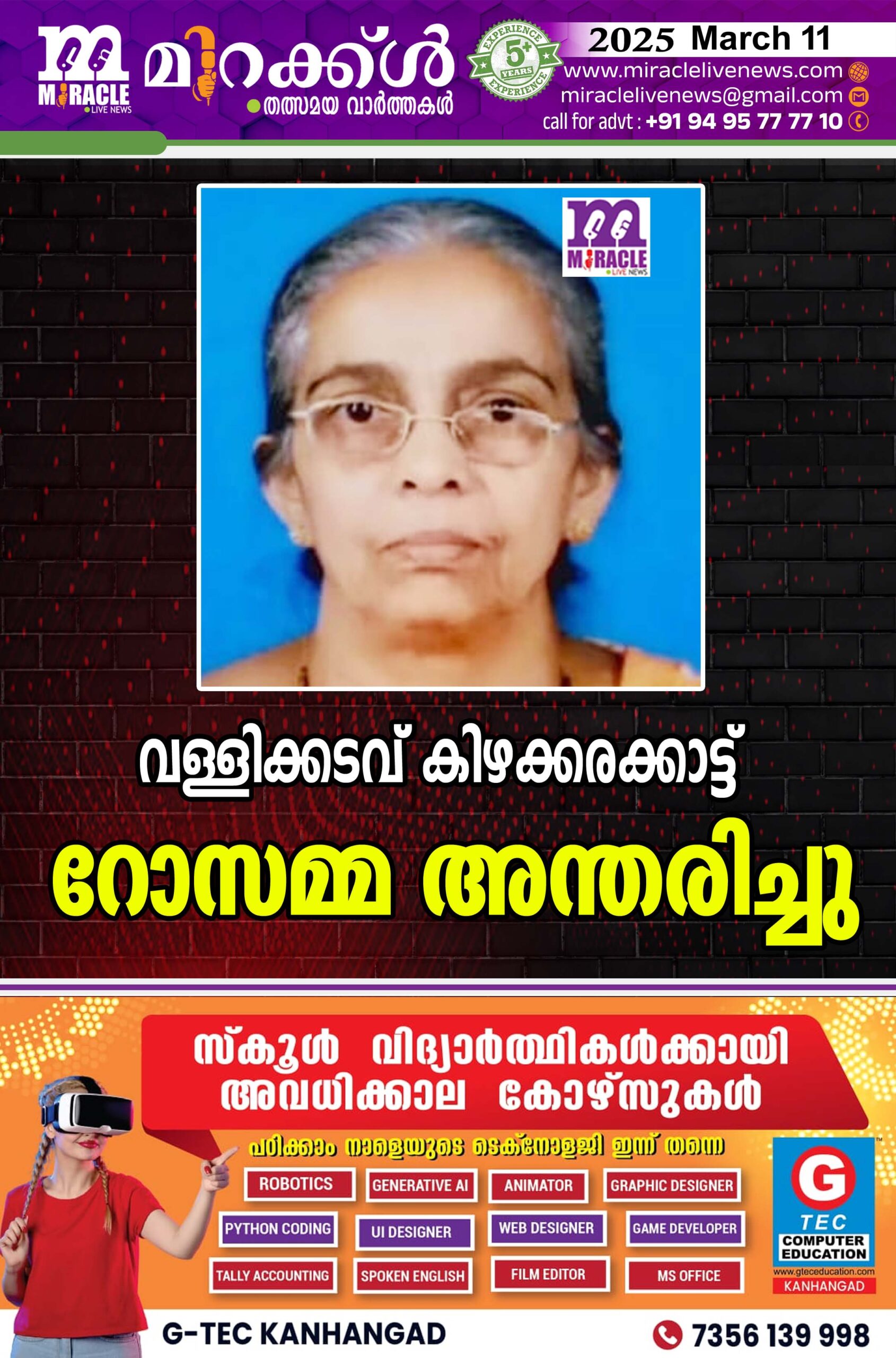 വള്ളിക്കടവ് കിഴക്കരക്കാട്ട് റോസമ്മ അന്തരിച്ചു