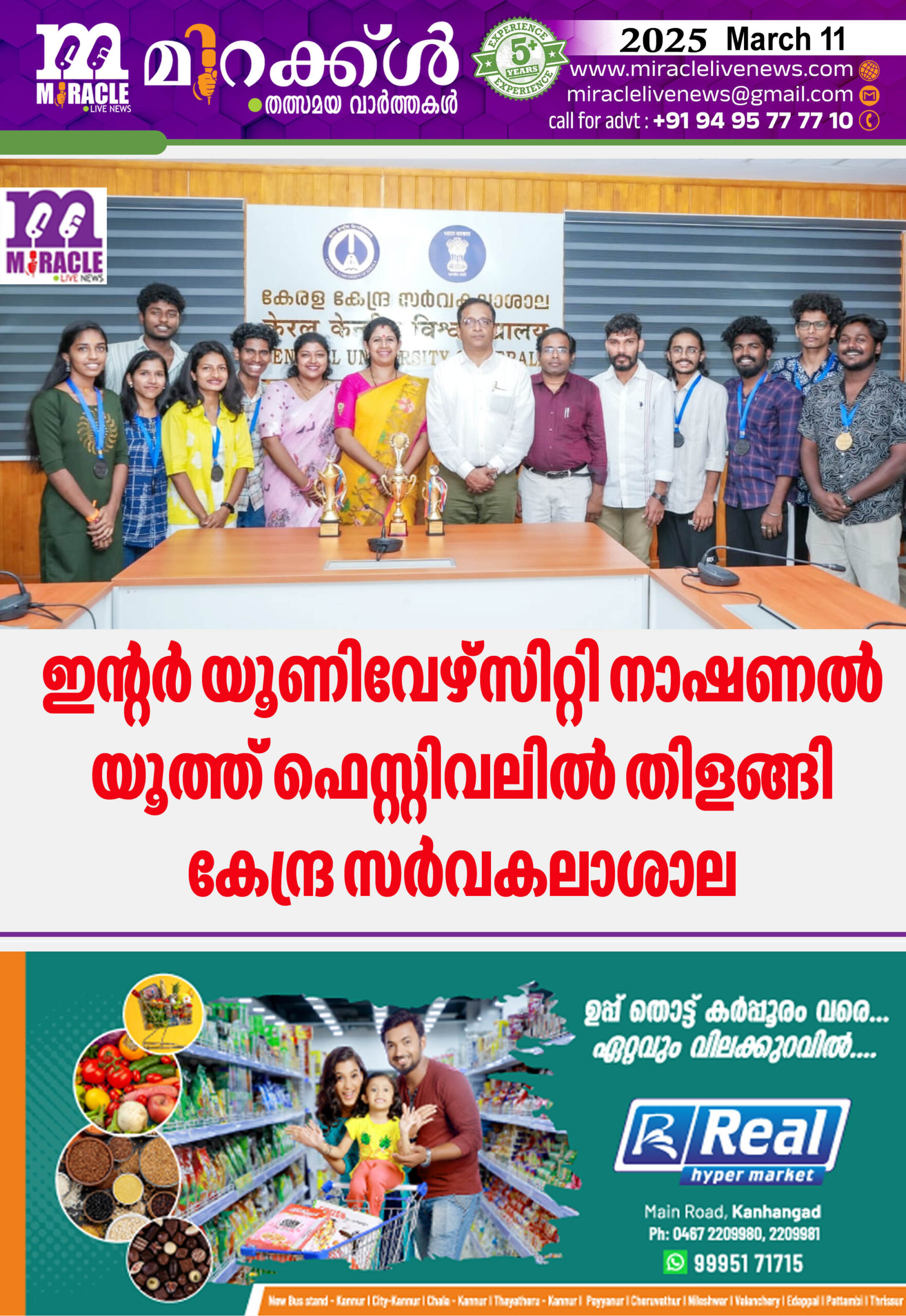 ഇന്റര് യൂണിവേഴ്സിറ്റി നാഷണല് യൂത്ത് ഫെസ്റ്റിവലില് തിളങ്ങി കേന്ദ്ര സര്വകലാശാല