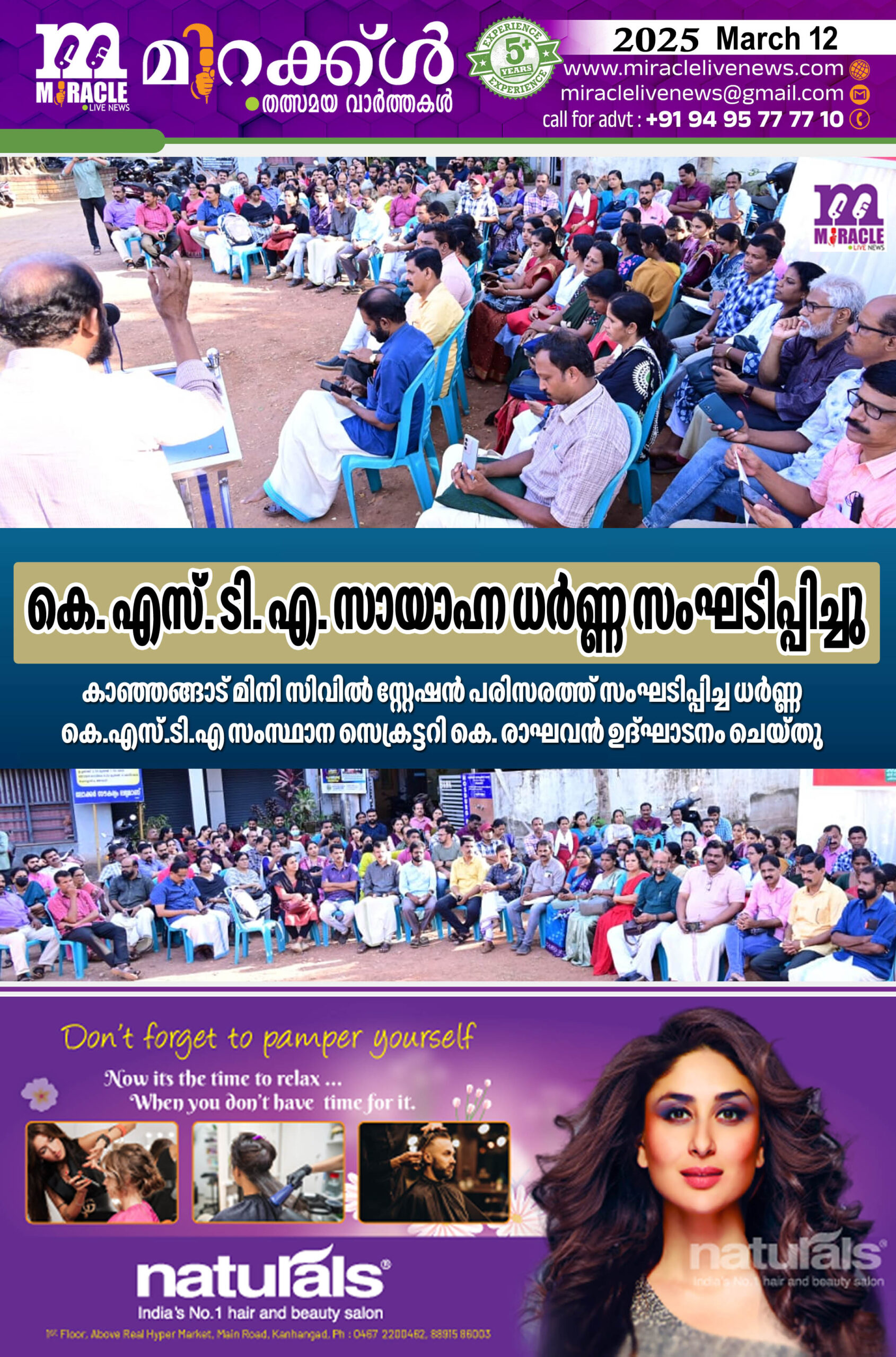 കെ. എസ്. ടി. എ. സായാഹ്ന ധര്ണ്ണ സംഘടിപ്പിച്ചു; കാഞ്ഞങ്ങാട് മിനി സിവില് സ്റ്റേഷന് പരിസരത്ത് സംഘടിപ്പിച്ച ധര്ണ്ണ കെ.എസ്.ടി.എ. സംസ്ഥാന സെക്രട്ടറി കെ. രാഘവന് ഉദ്ഘാടനം ചെയ്തു