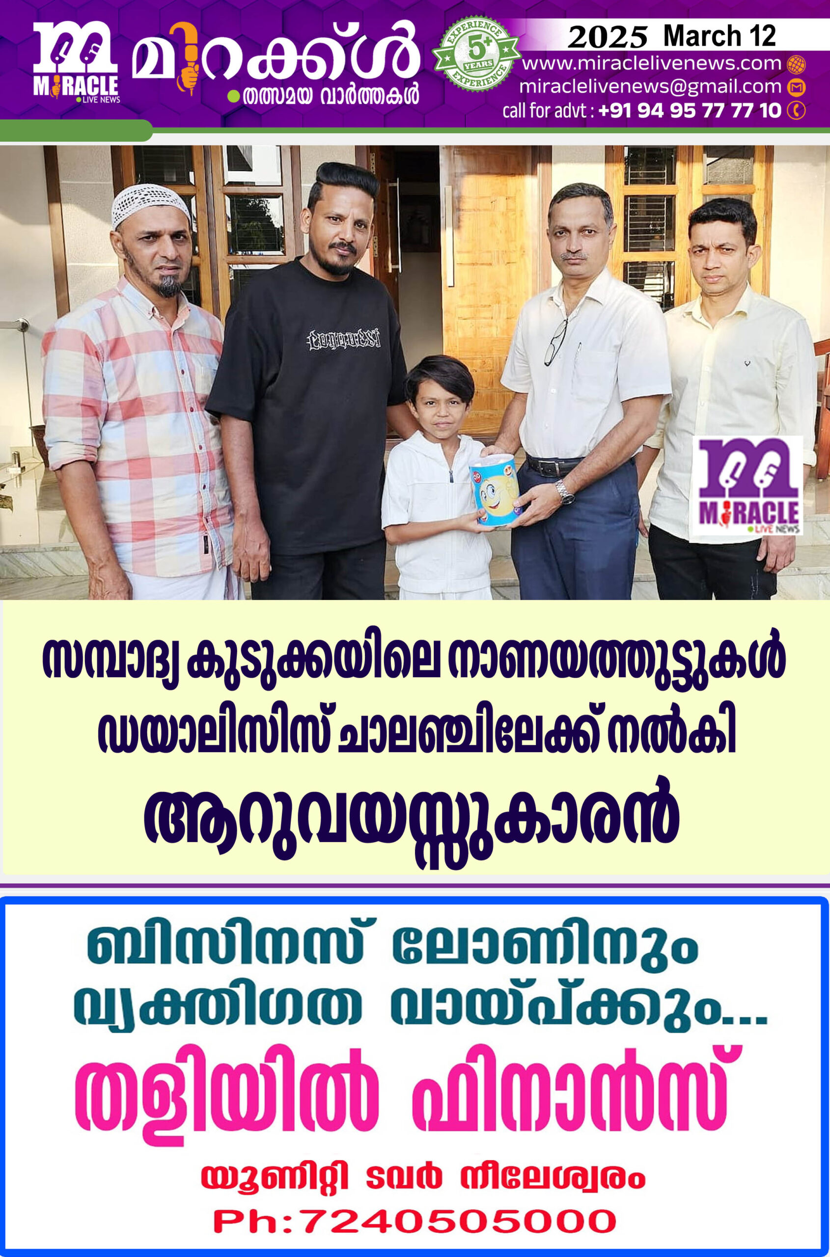 മുക്കൂട് കാരയില് ബഷീറിന്റെയും ഹസീനയുടെയും മകന് മുഹമ്മദ് ഹാമിറാണ് ഈ കൊച്ചു മിടുക്കന്. കുണിയ എമിന് ഇന്റര്നാഷണല് അക്കാദമിയിലെ യു കെ ജി വിദ്യാര്ഥിയാണ്. സഹായി ചാരിറ്റബിള് ട്രസ്റ്റ് ചെയര്മാന് ഷരീഫ് മിന്നയുടെ സാന്നിധ്യത്തില് ചിത്താരി ഡയാലിസിസ് സെന്റര് അഡ്മിനിസ്ട്രേറ്റര് ഷാഹിദ് പി വി മുഹമ്മദ് ഹാമിറില് നിന്നും ഫണ്ട് ഏറ്റുവാങ്ങി. ഇഖ്ബാല് കൂളിക്കാട്, ശിഹാബ് തായല് എന്നിവര് സംബന്ധിച്ചു.