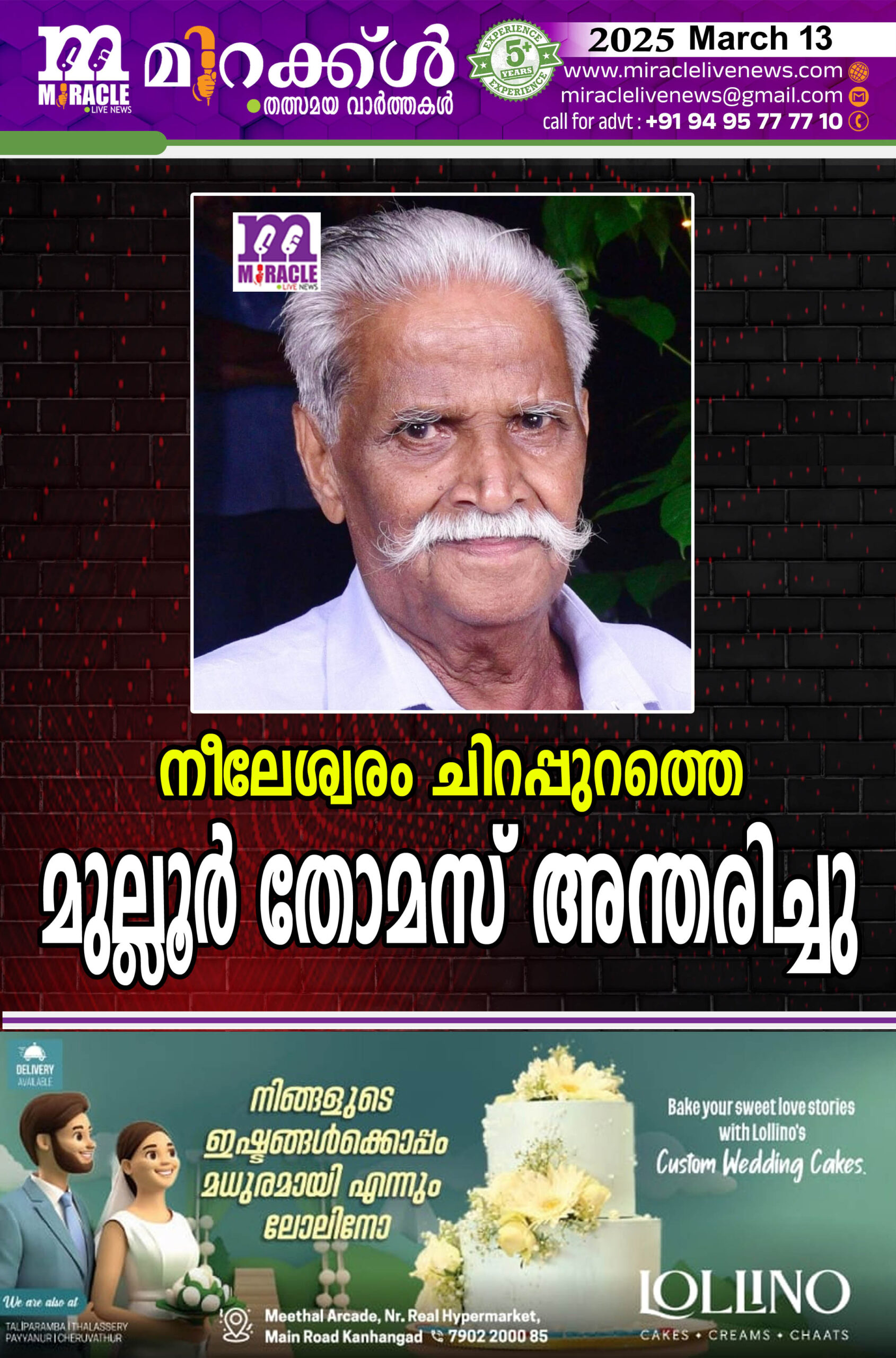 നീലേശ്വരം ചിറപ്പുറത്തെ മുല്ലൂര് തോമസ് അന്തരിച്ചു
