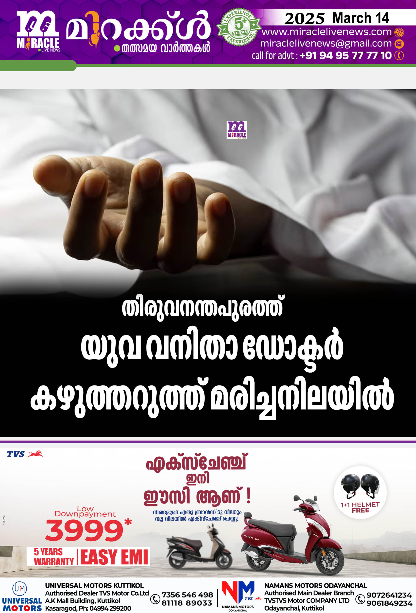 തിരുവനന്തപുരത്ത് യുവ വനിതാ ഡോക്ടര് കഴുത്തറുത്ത് മരിച്ചനിലയില്