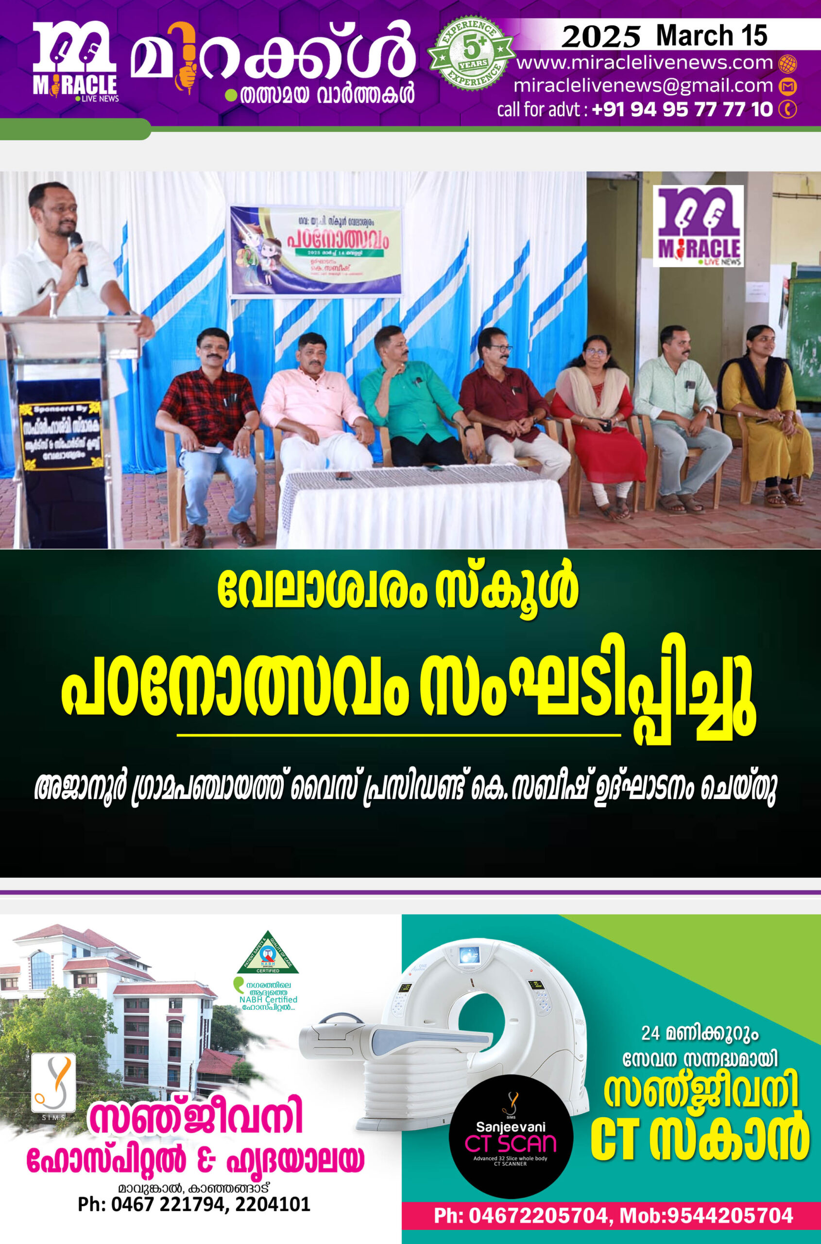 വേലാശ്വരം ഗവ:യു.പി സ്കൂള് പഠനോത്സവം. അജാനൂര് ഗ്രാമപഞ്ചായത്ത് വൈസ് പ്രസിഡണ്ട് കെ. സബീഷ് ഉദ്ഘാടനം ചെയ്തു. സ്കൂള് ഹെഡ്മാസ്റ്റര് ടി. വിഷ്ണു നമ്പൂതിരി സ്വാഗതം പറഞ്ഞ ചടങ്ങില് പിടിഎ പ്രസിഡന്റ് പി. വിനോദ് അധ്യക്ഷത വഹിച്ചു. എസ്.എം സി ചെയര്മാന് പ്രകാശന്.എ. ,പിടിഎ വൈസ് പ്രസിഡന്റ് കെ.വി. സുനില്കുമാര് , മദര് പി ടി എ പ്രസിഡണ്ട് കെ. ജയശ്രീ, വികസന സമിതി അംഗം ഗോവിന്ദന് നമ്പൂതിരി ,സീനിയര് അസിസ്റ്റന്റ് കെ. വി.ശശികുമാര്, കെ. വി. രാജന്, തുടങ്ങിയവര് ചടങ്ങിന് ആശംസകള് അര്പ്പിച്ചു. സ്റ്റാഫ് സെക്രട്ടറി കെ ഉമാദേവി നന്ദി പറഞ്ഞു. കുട്ടികളുടെ ഈ വര്ഷത്തെ പഠന മികവുകളുടെ പ്രദര്ശനവും നടന്നു. ഭാഷ കോര്ണര്, ശാസ്ത്ര കോര്ണര്, ഗണിത കോര്ണര്, അവതരണ കോര്ണര് എന്നിവ ഒരുക്കി മേഖല തിരിച്ചായിരുന്നുഅവതരണം.