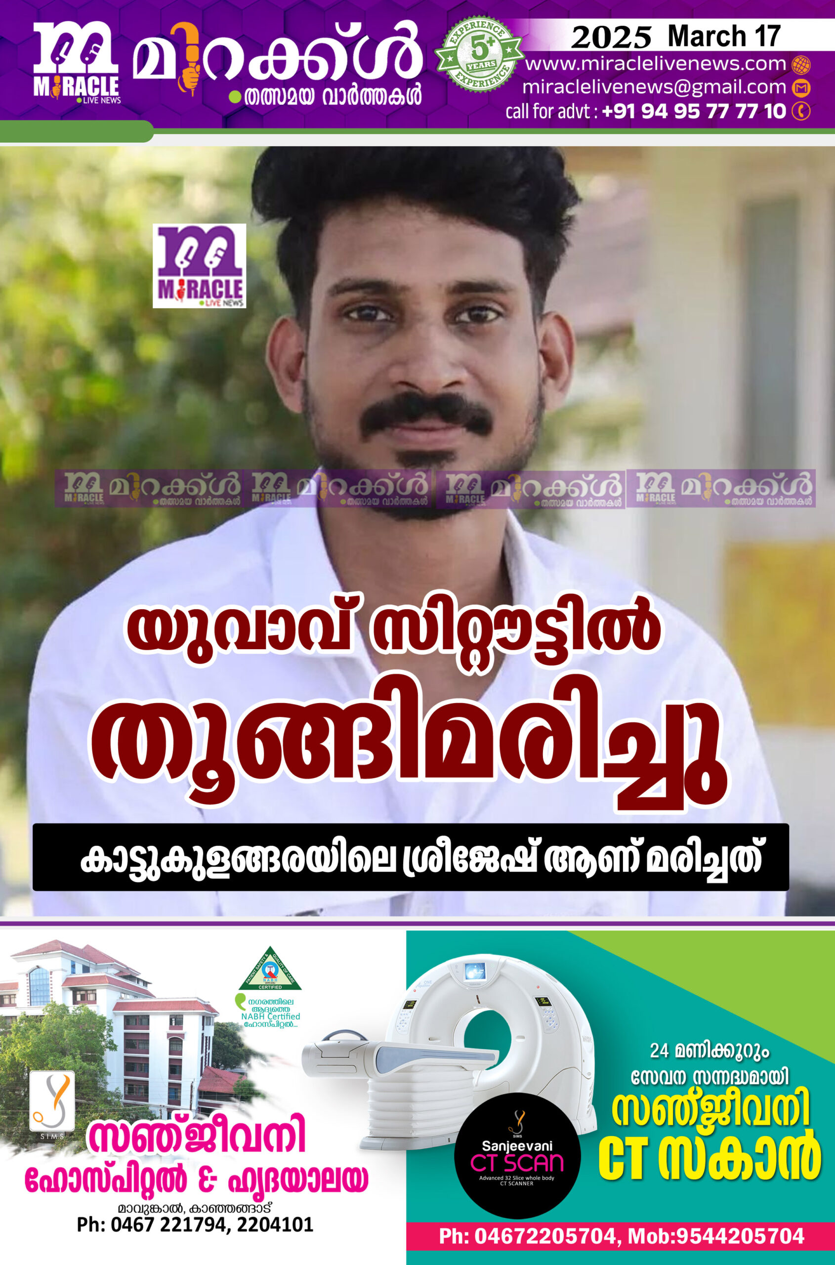 യുവാവ് സിറ്റൗട്ടില് തൂങ്ങിമരിച്ചു; കാട്ടുകുളങ്ങരയിലെ ശ്രീജേഷ് ആണ് മരിച്ചത്