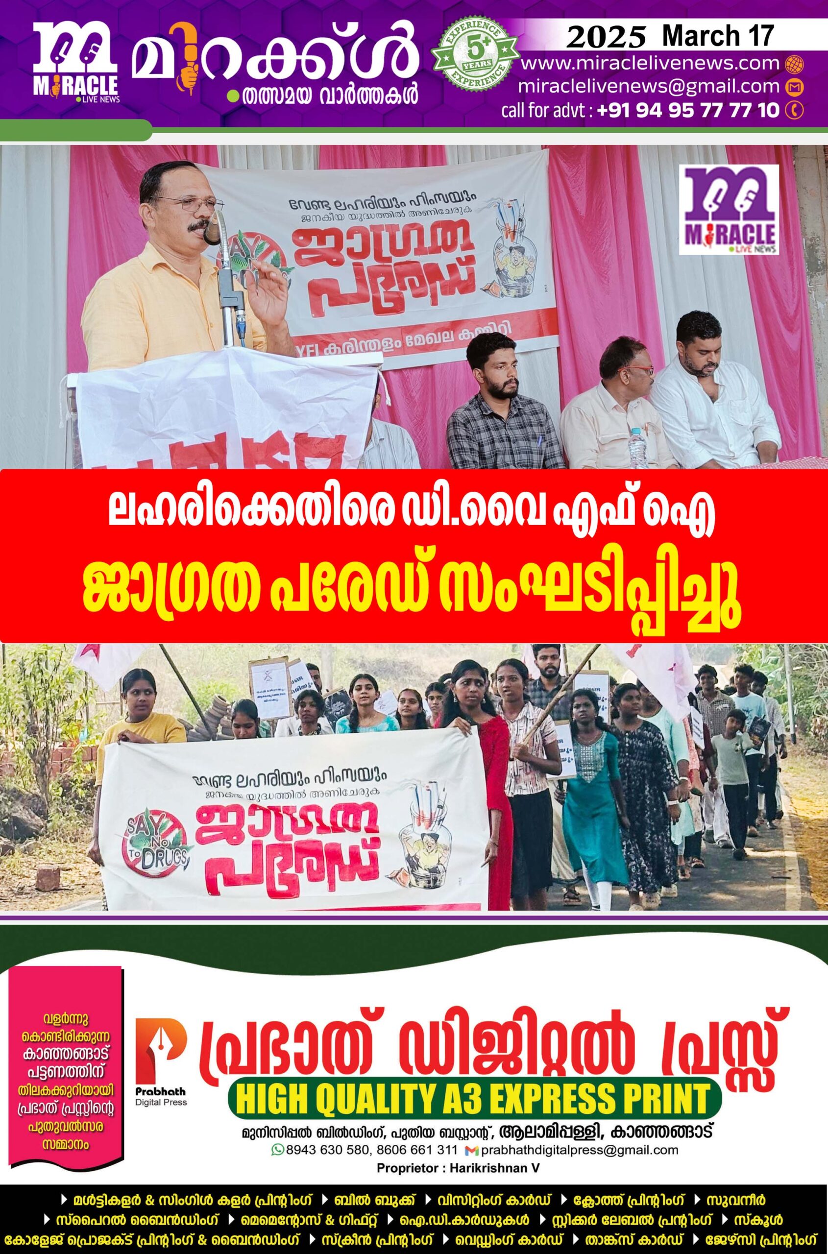 ലഹരിക്കെതിരെ ഡി വൈ എഫ് ഐ ജാഗ്രത പരേഡ് സംഘടിപ്പിച്ചു