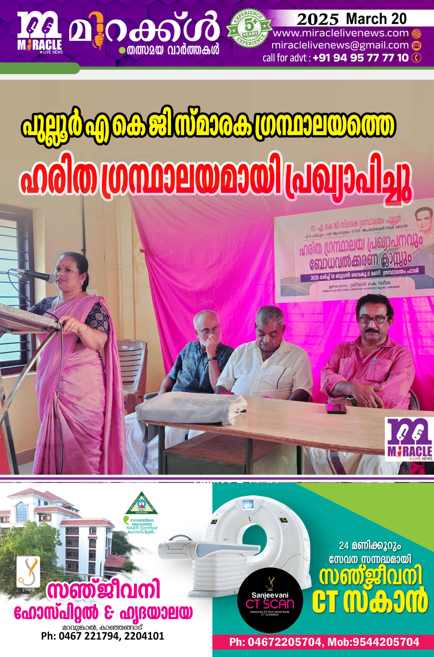 പുല്ലൂര് : ഏ കെ ജി സ്മാരക ഗ്രന്ഥാലയത്തിന്റെ നേതൃത്തില് ഹരിതഗ്രന്ഥാലയ പ്രഖ്യാപനവും മാലിന്യ മുക്തനവകേരള ക്യാമ്പയിനും സംഘടിപ്പിച്ചു. കാഞ്ഞങ്ങാട് ബ്ലോക്ക് ക്ഷേമകാര്യ സ്റ്റാന്റിംഗ് കമ്മിറ്റി ചെയര്പേഴ്സണ് കെ സീതഹരിതഗ്രന്ഥാലയ പ്രഖ്യാപനം