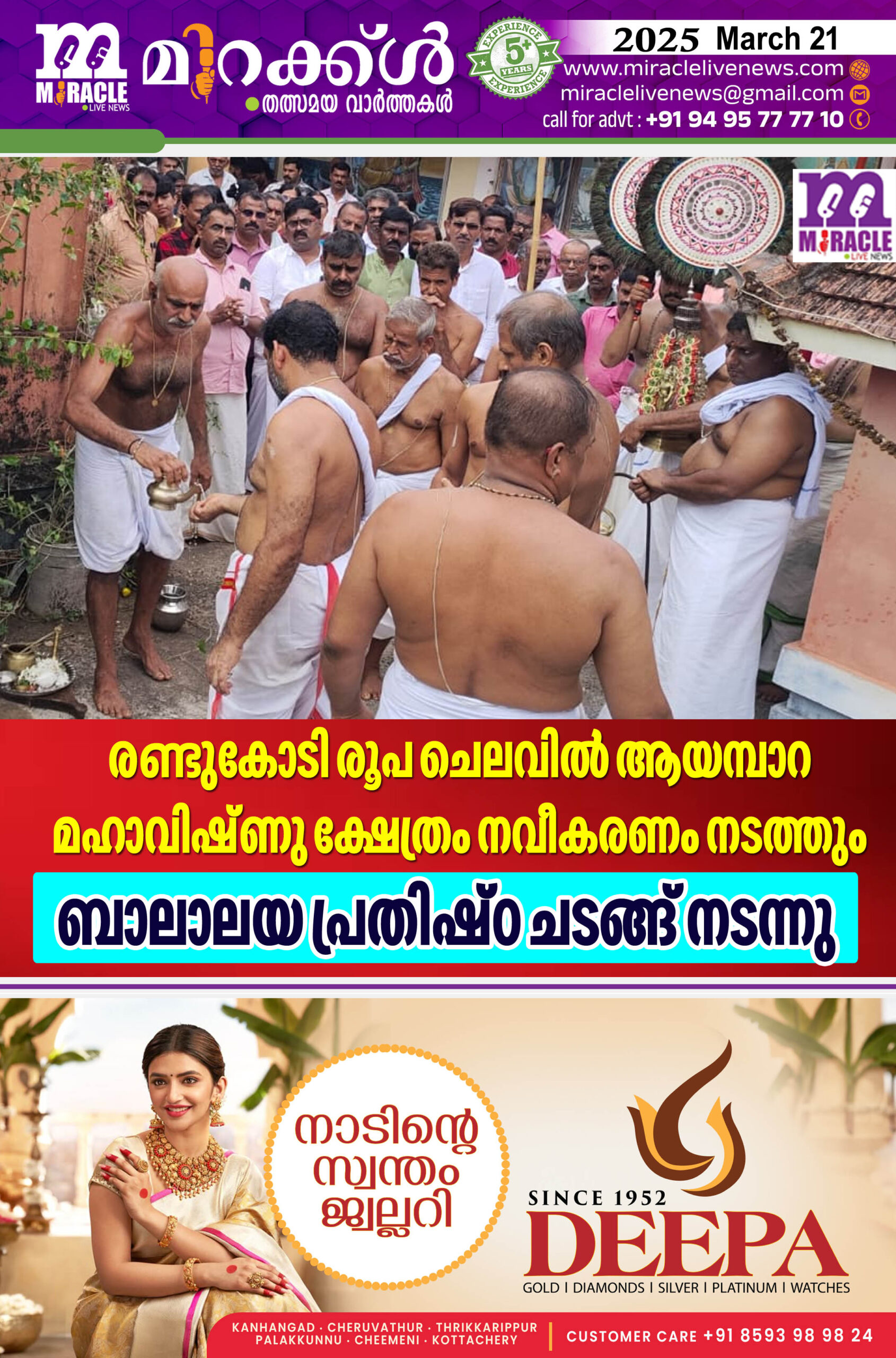 രണ്ടുകോടി രൂപ ചെലവില്‍ ആയമ്പാറ മഹാവിഷ്ണു ക്ഷേത്രം നവീകരണം നടത്തും; ബാലാലയ പ്രതിഷ്ഠ ചടങ്ങ് നടന്നു
