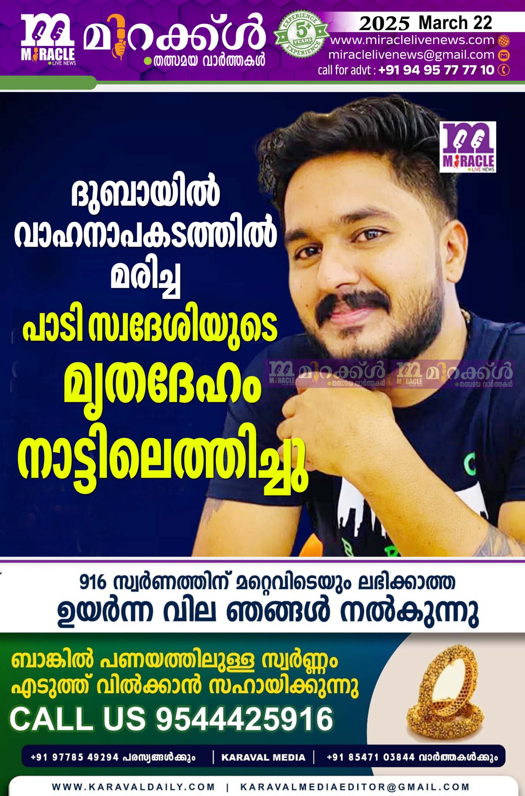 ദുബായില് വാഹനാപകടത്തില് മരിച്ച പാടി സ്വദേശിയുടെ മൃതദേഹം നാട്ടിലെത്തിച്ചു