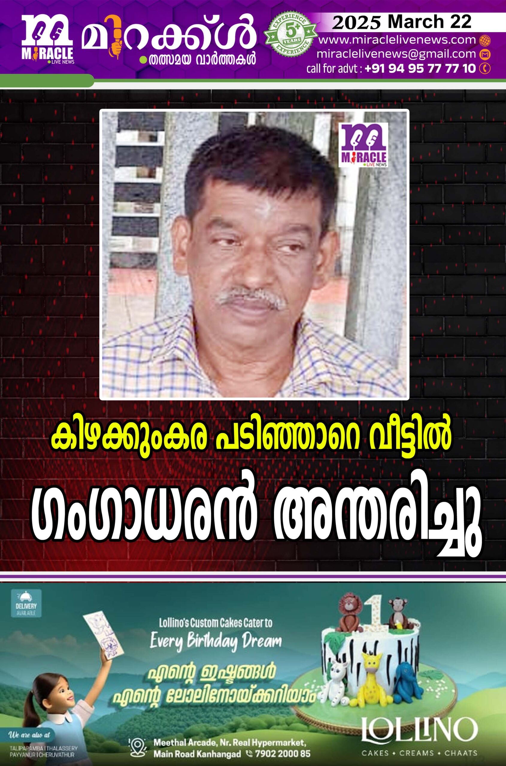 കിഴക്കുംകര പടിഞ്ഞാറെ വീട്ടില് ഗംഗാധരന് അന്തരിച്ചു