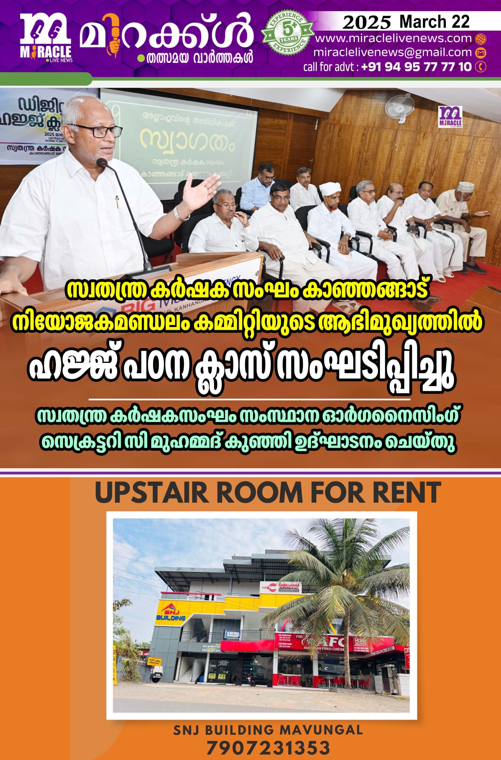 സ്വതന്ത്ര കര്ഷക സംഘം കാഞ്ഞങ്ങാട് നിയോജകമണ്ഡലം കമ്മിറ്റിയുടെ ആഭിമുഖ്യത്തില് ഹജ്ജ് പഠന ക്ലാസ് സംഘടിപ്പിച്ചു; സ്വതന്ത്ര കര്ഷകസംഘം സംസ്ഥാന ഓര്ഗനൈസിംഗ് സെക്രട്ടറി സി മുഹമ്മദ് കുഞ്ഞി ഉദ്ഘാടനം ചെയ്തു