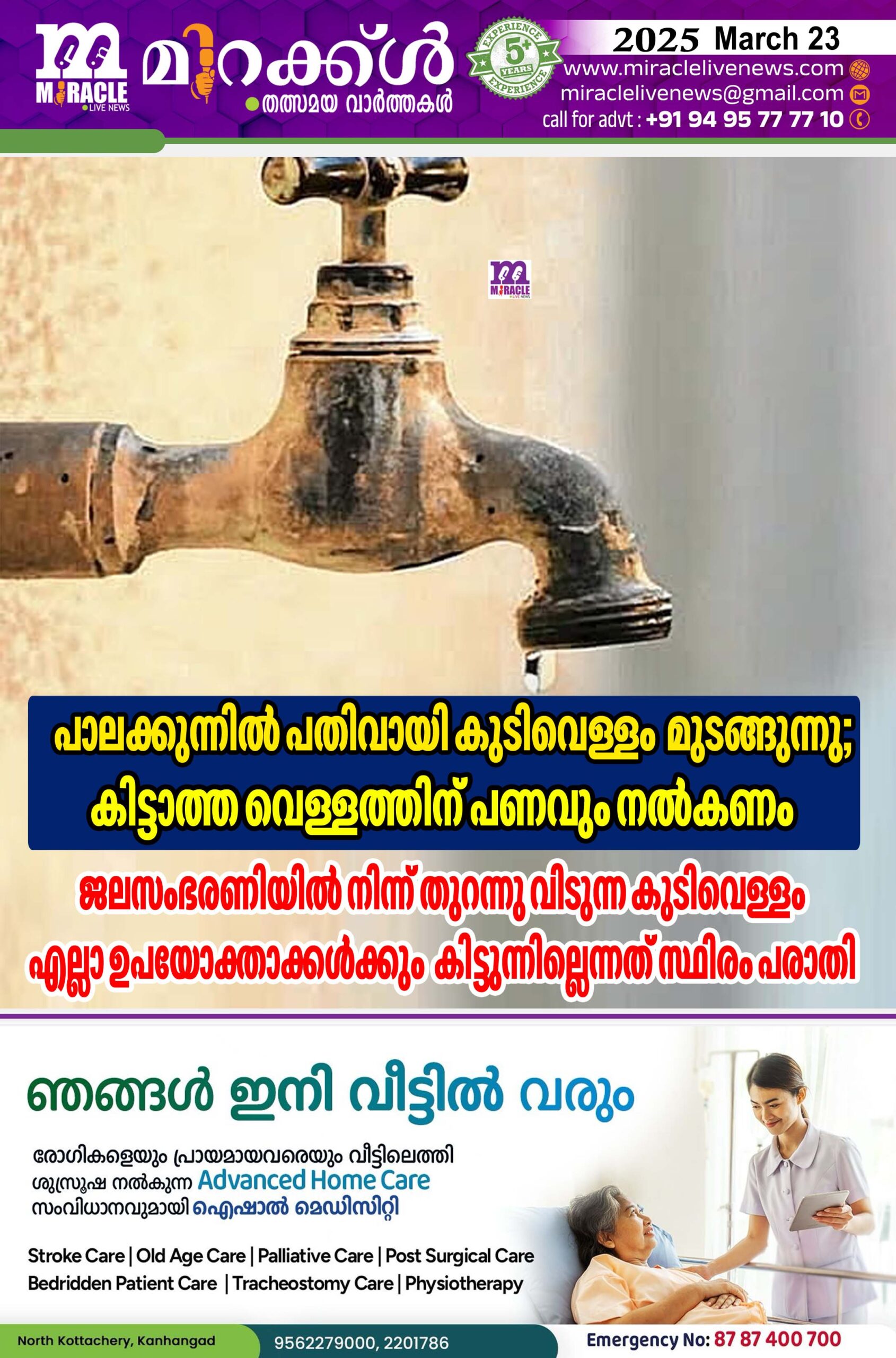 പാലക്കുന്നില്‍ പതിവായി കുടിവെള്ളം മുടങ്ങുന്നു; കിട്ടാത്ത വെള്ളത്തിന് പണവും നല്‍കണം; ജലസംഭരണിയില്‍ നിന്ന് തുറന്നു വിടുന്ന കുടിവെള്ളം എല്ലാ ഉപയോക്താക്കള്‍ക്കും കിട്ടുന്നില്ലെന്നത് സ്ഥിരം പരാതി