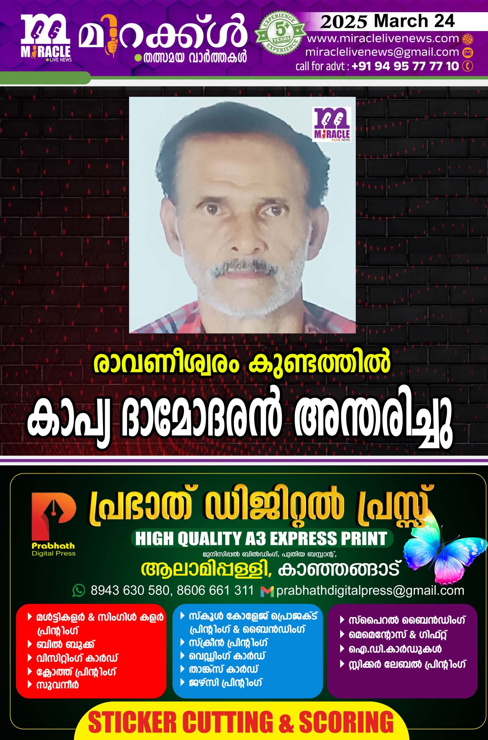 രാവണീശ്വരം കുണ്ടത്തില്‍ കാപ്യ ദാമോദരന്‍ അന്തരിച്ചു