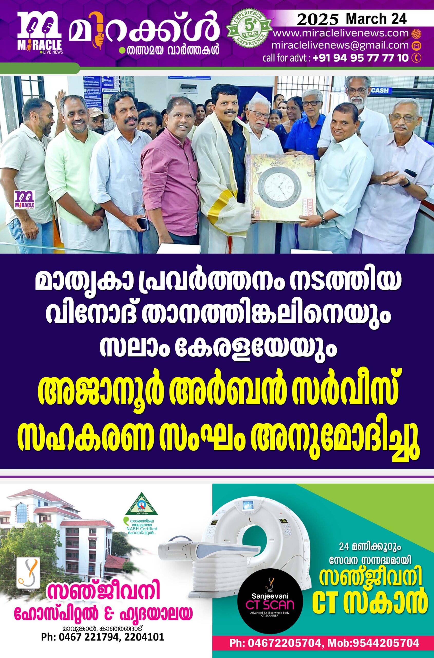 മാതൃകാ പ്രവര്ത്തനം നടത്തിയ വിനോദ് താനത്തിങ്കലിനെയും സലാം കേരളയേയും അജാനൂര് അര്ബന് സര്വീസ് സഹകരണ സംഘം അനുമോദിച്ചു