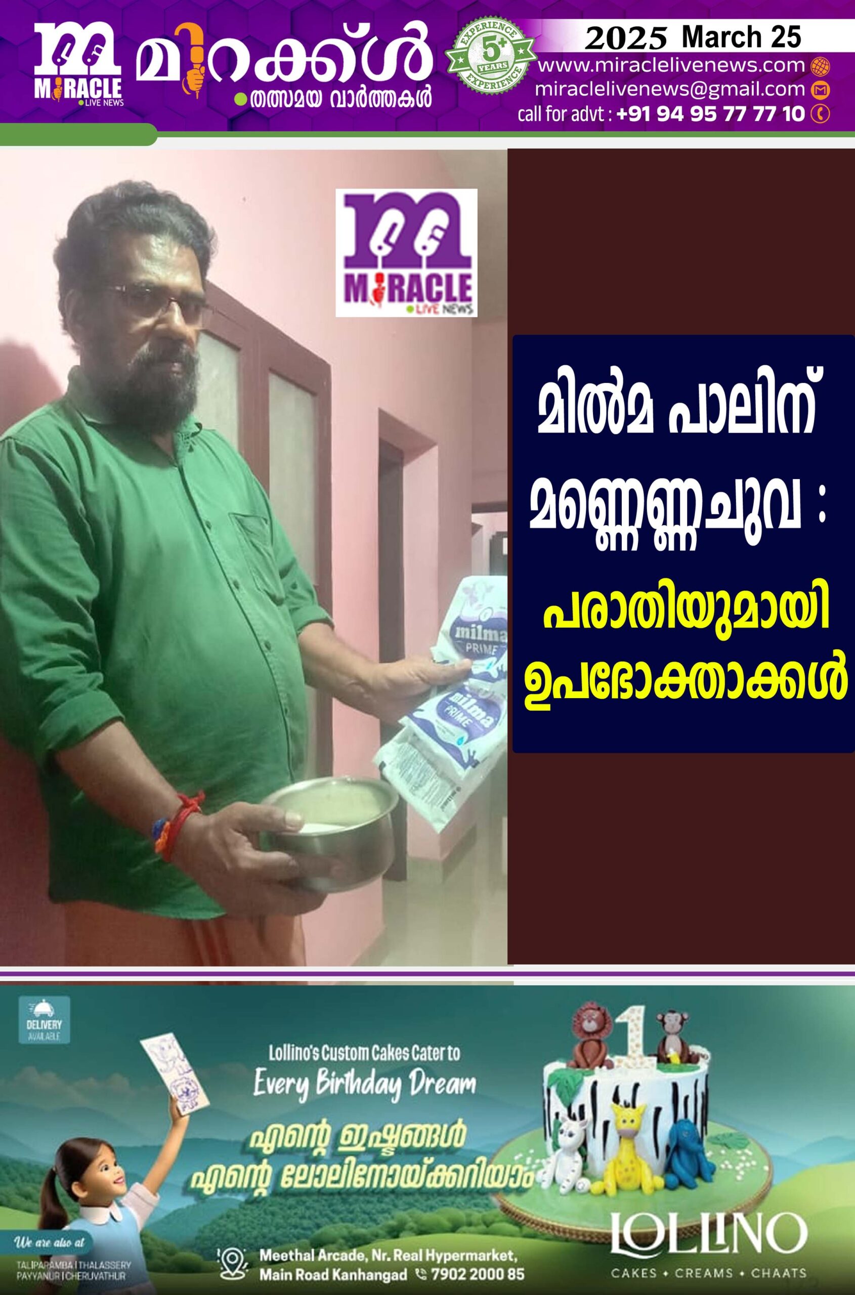 കാഞ്ഞങ്ങാട്:മില്മയുടെ മാവുങ്കാലിലെ കാസര്കോട് ജില്ലാ ഡയറിയില് നിന്നും ശനിയാഴ്ച വിതരണം ചെയ്ത പായ്ക്കറ്റ് പാലിനെക്കുറിച്ച് വ്യാപക പരാതി. പാല് തിളപ്പിക്കുമ്പോള് രൂക്ഷഗന്ധം ഉയരുന്നതായും മണ്ണെണ്ണ ചുവയ്ക്കുന്നതുമായാണ് പരാതി ഉയര്ന്നത്. പാല് വാങ്ങി വീട്ടില് കൊണ്ടുപോയി ചായ തിളപ്പിച്ചപ്പോള് അരുചി തോന്നിയതിനെതുടര്ന്ന് പലരും തിരിച്ചുചെന്ന് കച്ചവടക്കാരുമായി വഴക്കുണ്ടാക്കി. ഞായറാഴ്ചയും ഇന്നലെയുമായി ഇതുമായി ബന്ധപ്പെട്ട് നിരവധി പരാതികളാണ് മില്മ ഡെയറിയിലെത്തിയത്. ആനന്ദാശ്രമം സ്വദേശിയായ ബസ് കണ്ടക്ടര് ബി.ദാമോദരന് തന്റെ വിവാഹവാര്ഷികദിനം ആഘോഷിക്കാനാണ് നാലു പായ്ക്കറ്റ് മില്മ പാല് വാങ്ങിയാണ് പായസമുണ്ടാക്കിയത്. ”ആദ്യം കൊച്ചുമകള്ക്ക് കൊടുത്തപ്പോള് ഒരു കവിള് കുടിച്ചപ്പോള് തന്നെ എന്തോ അരുചി തോന്നി മാറ്റിവെച്ചു. ഞാനും ഭാര്യയും കുടിച്ചപ്പോള് മണ്ണെണ്ണ ചുവയ്ക്കുന്നുണ്ടായിരുന്നു. വീട്ടിലെ പൂച്ച പോലും ഈ പാല് കുടിക്കാന് കൂട്ടാക്കിയില്ല”. -ദാമോദരന് പറയുന്നു. ഇതുമായി ആര്ക്കും ആരോഗ്യപ്രശ്നങ്ങളൊന്നും റിപ്പോര്ട്ട് ചെയ്തില്ല.