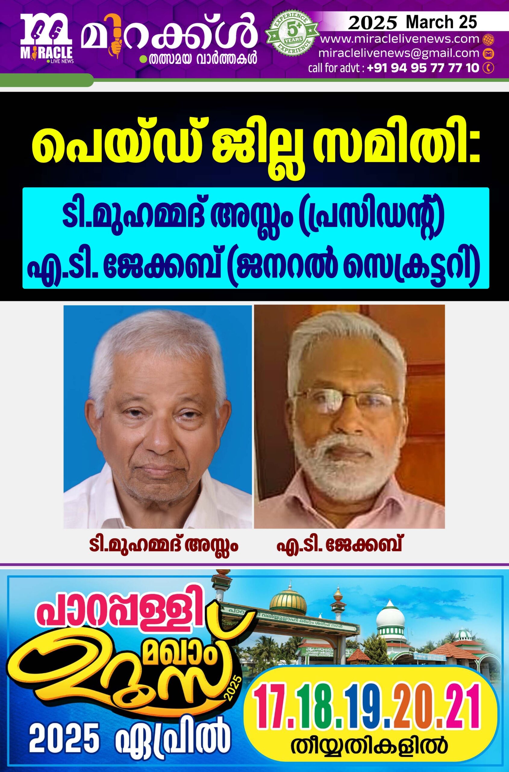 കാഞ്ഞങ്ങാട്:ബൗദ്ധീക വെല്ലുവിളികള് നേരിടുന്ന കുട്ടികള്ക്കുളള രക്ഷിതാക്കളുടെ സംസ്ഥാന തല കൂട്ടായ്മയായ പെയ്ഡ് (പാരന്റ്സ് അസോസിയേഷന് ഫോര് ഇന്റലക്ഷ്വലി ഡിസേബ്ള്ഡ് ) ജില്ല പ്രസിഡണ്ടായി ടി.മുഹമ്മദ് അസ്ലമിനെയും ജനറല് സെക്രട്ടറിയായി എ.ടി.ജേക്കബ് ചിറ്റാരിക്കാലിനെയും ട്രഷററായി സുബൈര് നീലേശ്വത്തിനെയും പെയ്ഡ് ജില്ല വാര്ഷിക പൊതുയോഗം തെരെഞ്ഞെടുത്തു.