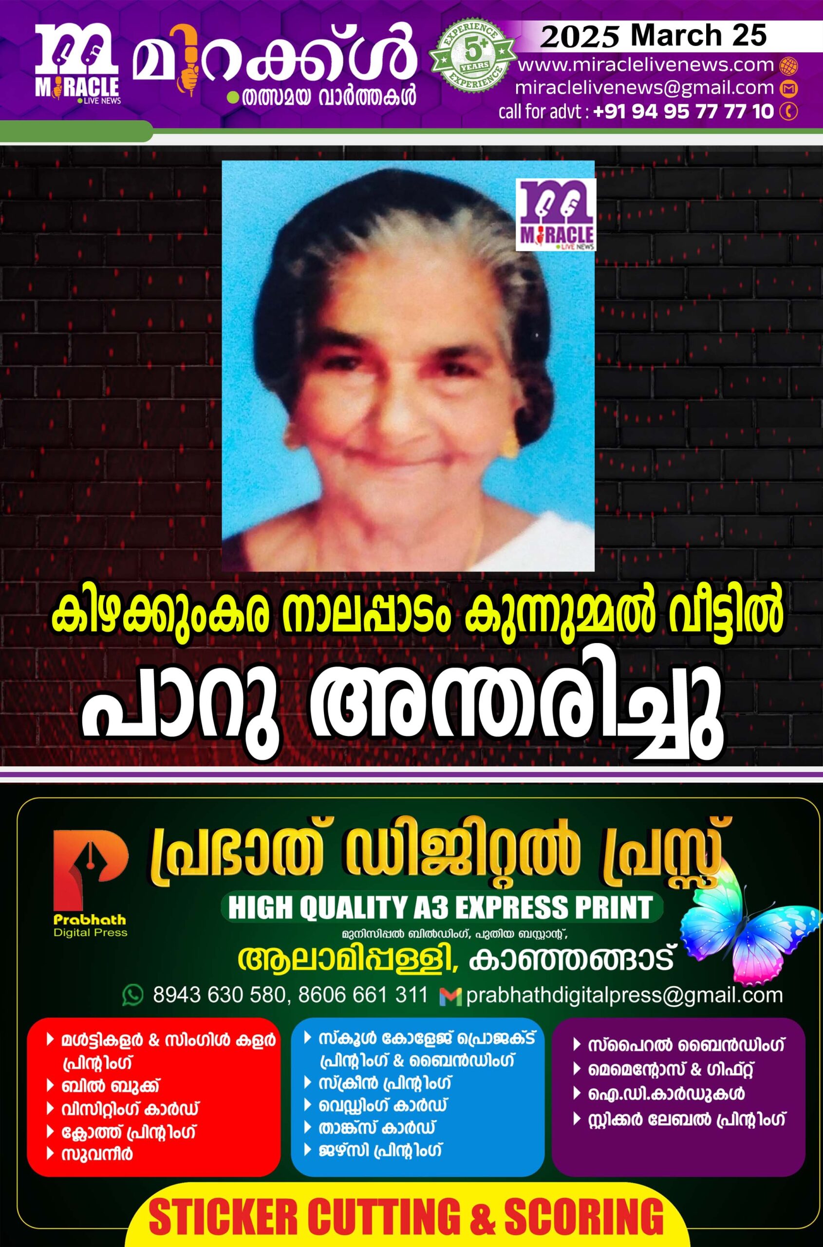 കിഴക്കുംകര നാലപ്പാടം കുന്നുമ്മല് വീട്ടില് പാറു അന്തരിച്ചു