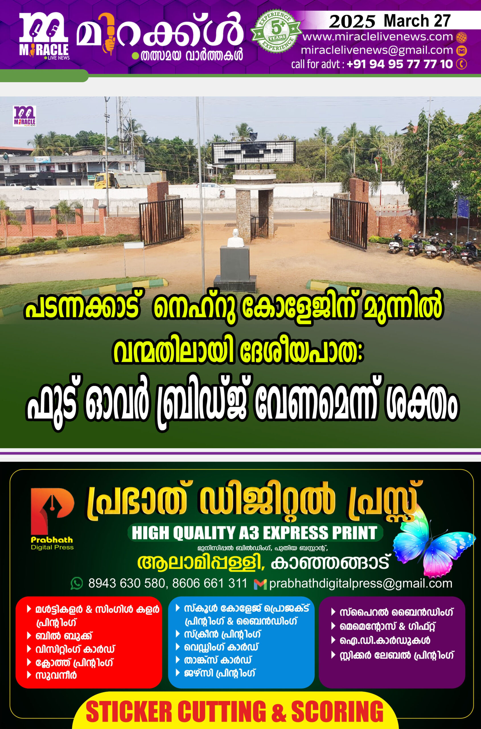 പടന്നക്കാട് നെഹ്റു കോളേജിന് മുന്നില് വന്മതിലായി ദേശീയപാത: ഫുട് ഓവര് ബ്രിഡ്ജ് വേണമെന്ന് ശക്തം